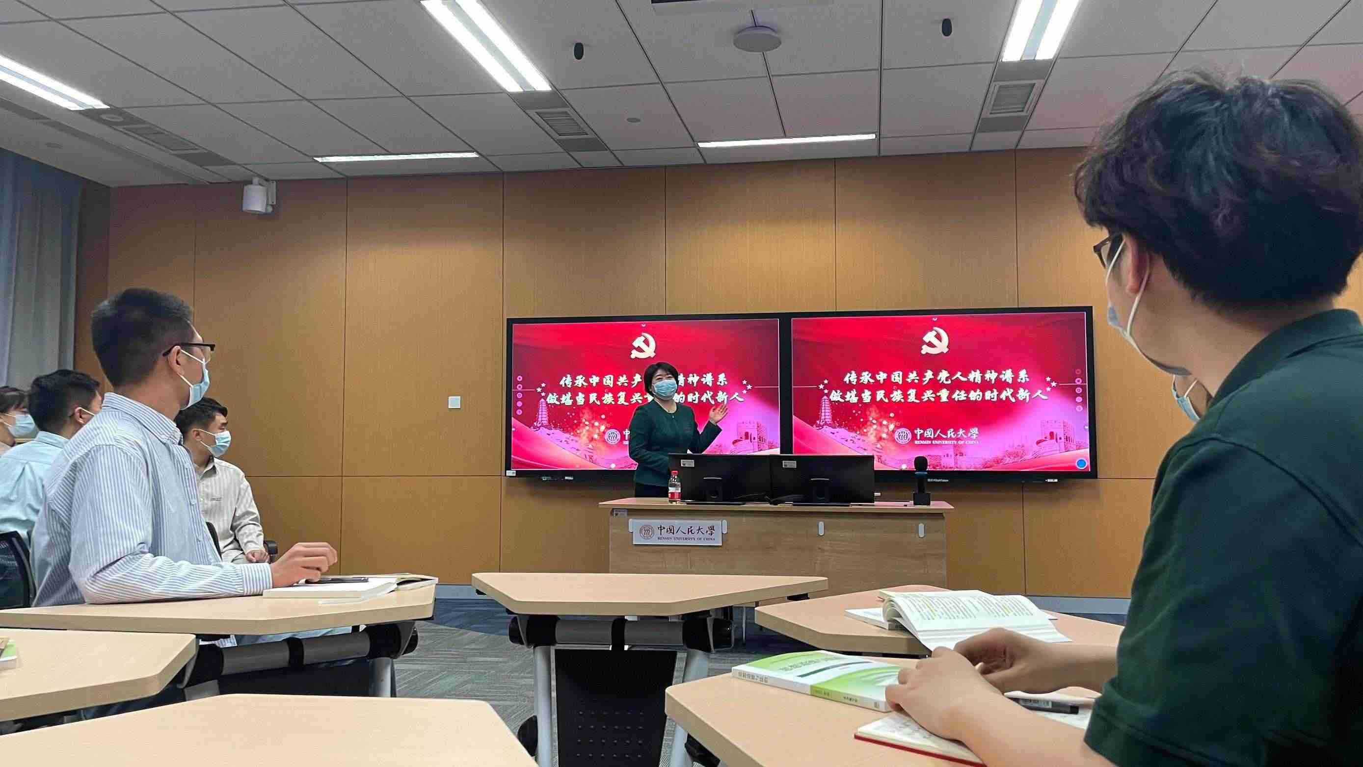 講臺前,授課教師、中國人民大學馬克思主義學院黨委書記王易正在播放視頻《陜北公學》,帶領(lǐng)同學們回顧“中國不會亡,因為有陜公”的紅色歷史,重溫人大人心中的延安精神。