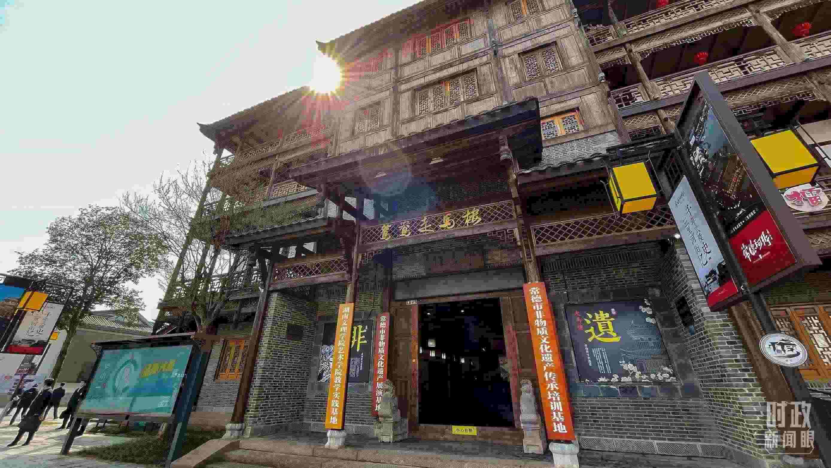 △常德河街鴛鴦走馬樓內(nèi)的常德高腔、常德木雕等非遺展示。(總臺央視記者郭鴻、央廣記者潘毅拍攝)