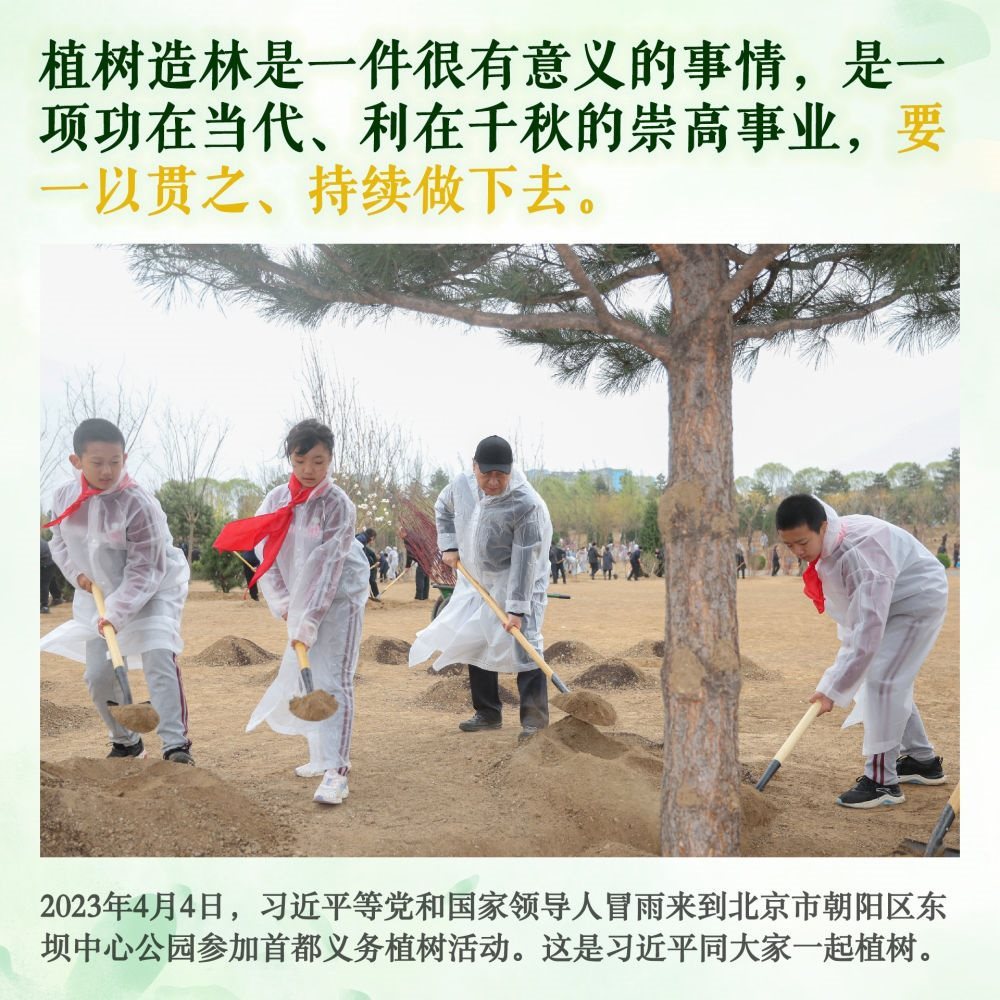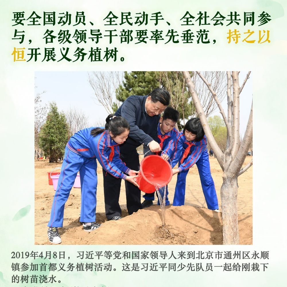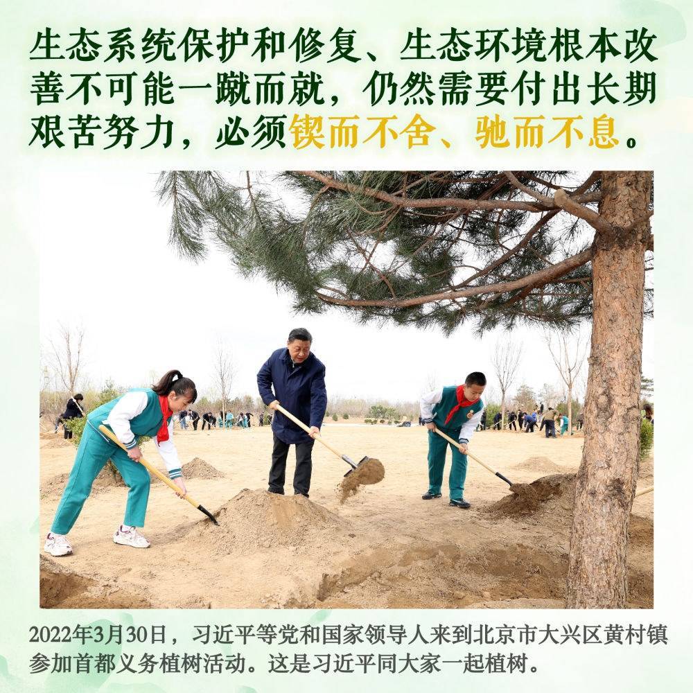 身體力行,持之以恒。此后的11個(gè)春天,無論晴雨,總書記都抽出時(shí)間加入植綠隊(duì)伍,并對(duì)國土綠化事業(yè)提出殷殷囑托。堅(jiān)持,是12年來總書記反復(fù)強(qiáng)調(diào)的關(guān)鍵內(nèi)涵。