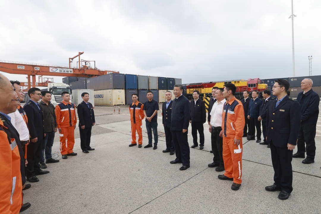 4月22日至23日,習(xí)近平總書記在重慶市考察調(diào)研。他先后來到重慶國際物流樞紐園區(qū)、九龍坡區(qū)謝家灣街道民主村社區(qū)、重慶市數(shù)字化城市運(yùn)行和治理中心,了解當(dāng)?shù)丶涌旖ㄔO(shè)西部陸海新通道、實(shí)施城市更新和保障改善民生、提高城市治理現(xiàn)代化水平等情況。