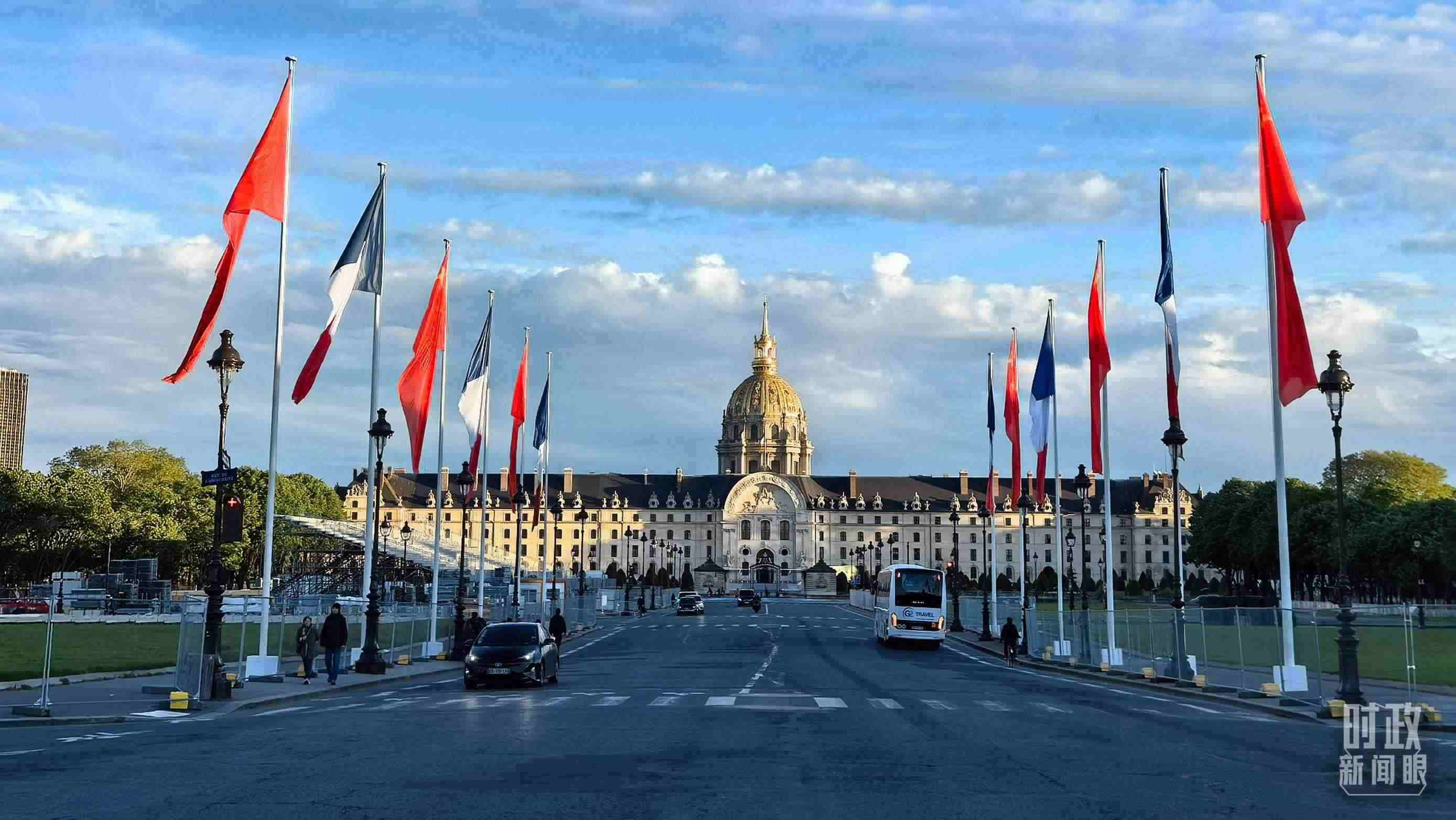 △法國巴黎榮軍院前懸掛中法兩國國旗。(總臺(tái)國廣記者吳倩拍攝)