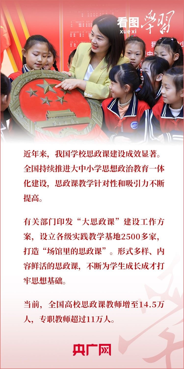 近日,習(xí)近平總書記對學(xué)校思政課建設(shè)作出重要指示。總書記強調(diào),新時代新征程上,思政課建設(shè)面臨新形勢新任務(wù),必須有新氣象新作為。各級黨委(黨組)要把思政課建設(shè)擺上重要議程,各級各類學(xué)校要自覺擔起主體責任,不斷開創(chuàng)新時代思政教育新局面,努力培養(yǎng)更多讓黨放心、愛國奉獻、擔當民族復(fù)興重任的時代新人。一起來學(xué)習(xí)!
