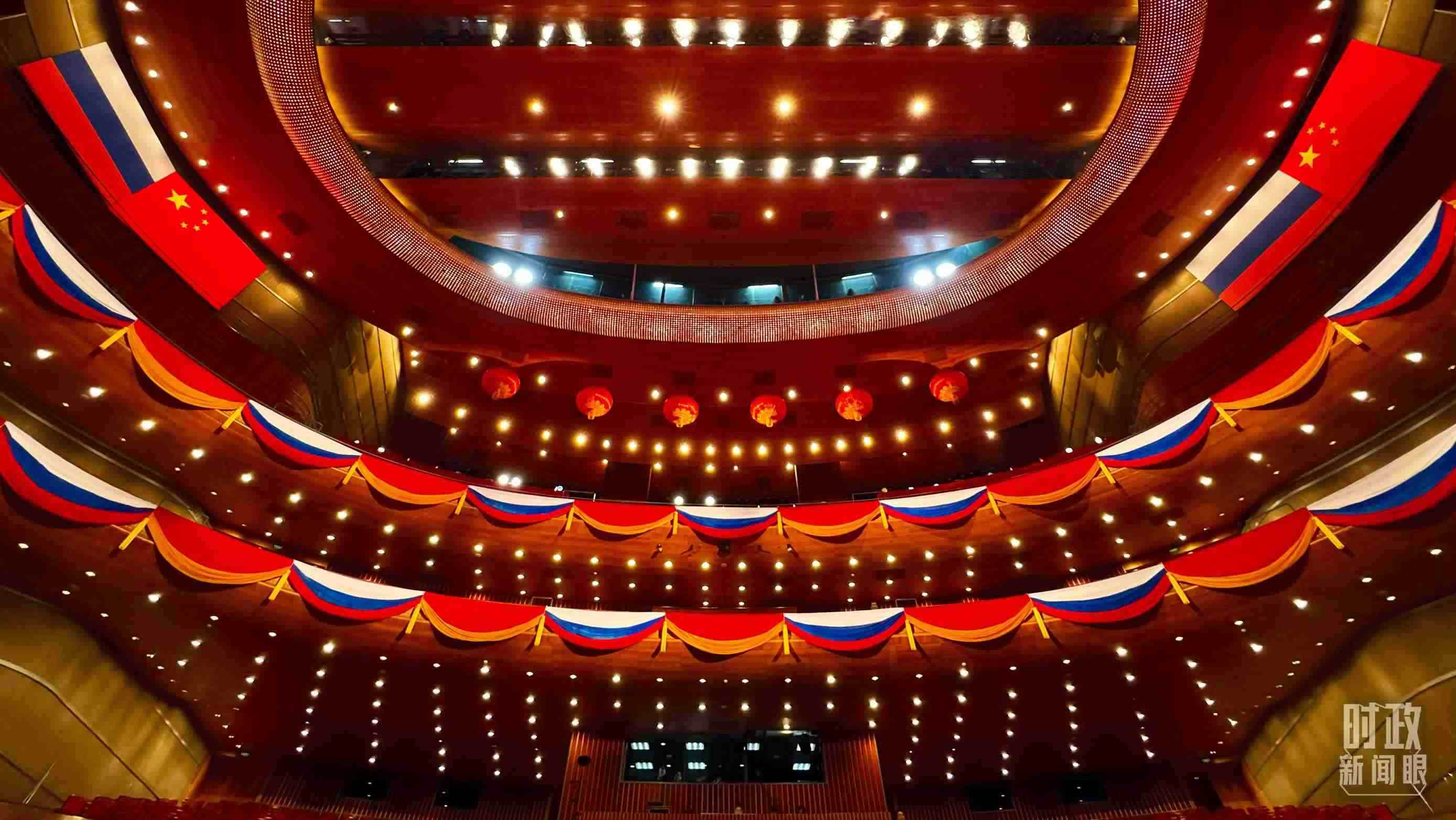 △中俄兩國元首共同出席“中俄文化年”開幕式暨慶祝中俄建交75周年專場音樂會并致辭,這是開始前的現(xiàn)場。(總臺央視記者劉琦拍攝)