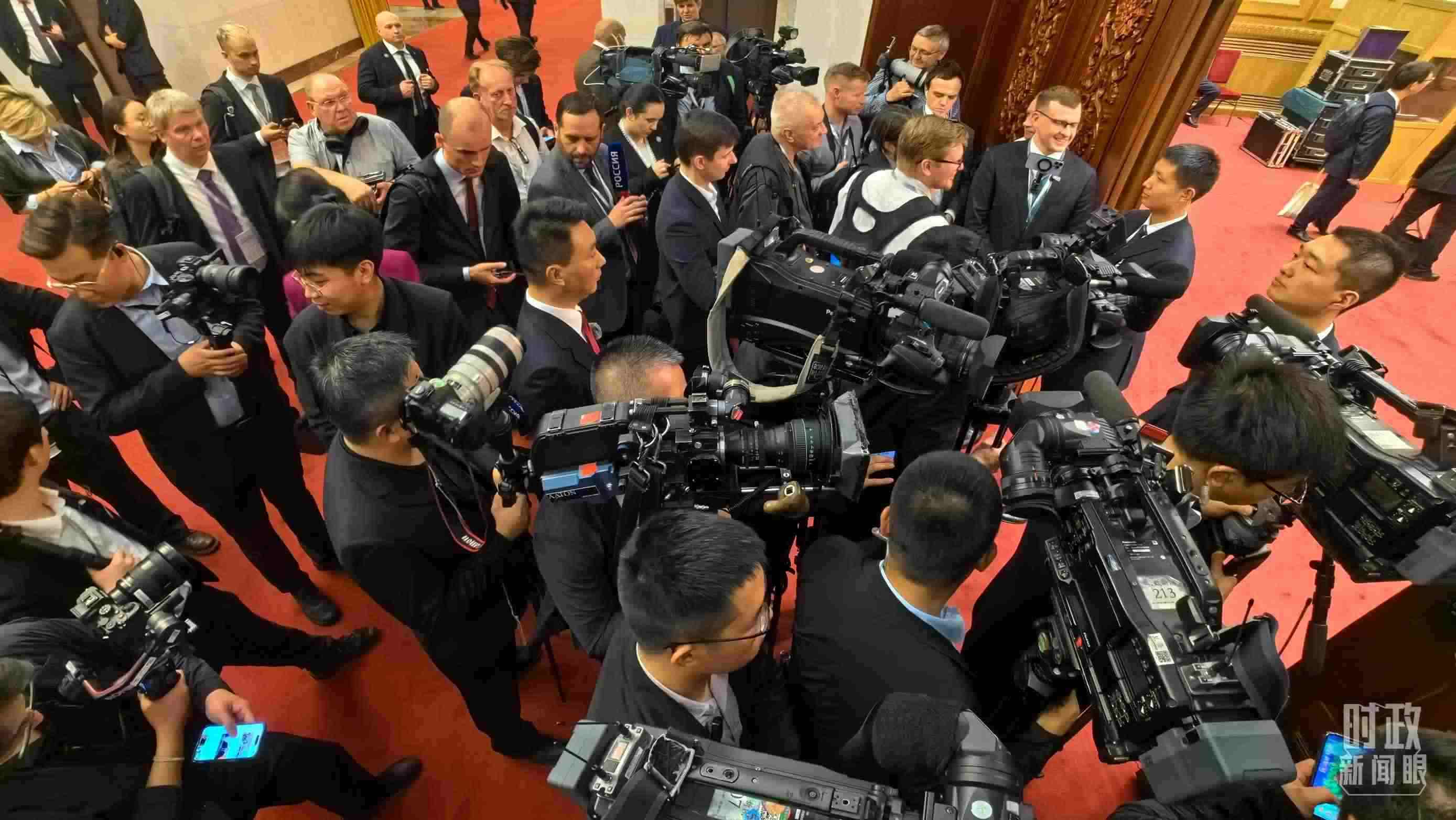 △當天參與現(xiàn)場報道的中外記者。(總臺央視記者楊波、王子杭拍攝)