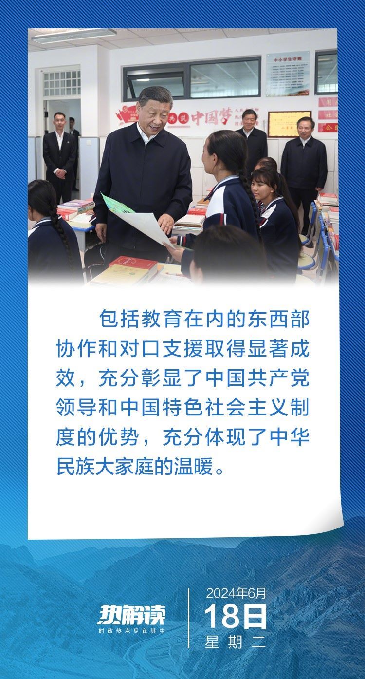 6月18日下午,在青海省考察的習(xí)近平總書記,首站來(lái)到這所中學(xué)看望老師和同學(xué)們。他先后走進(jìn)食堂、宿舍、教室,關(guān)心學(xué)生們的飲食、住宿、學(xué)習(xí)……了解當(dāng)?shù)厣钊胪七M(jìn)教育工作東西部協(xié)作和對(duì)口支援等情況。