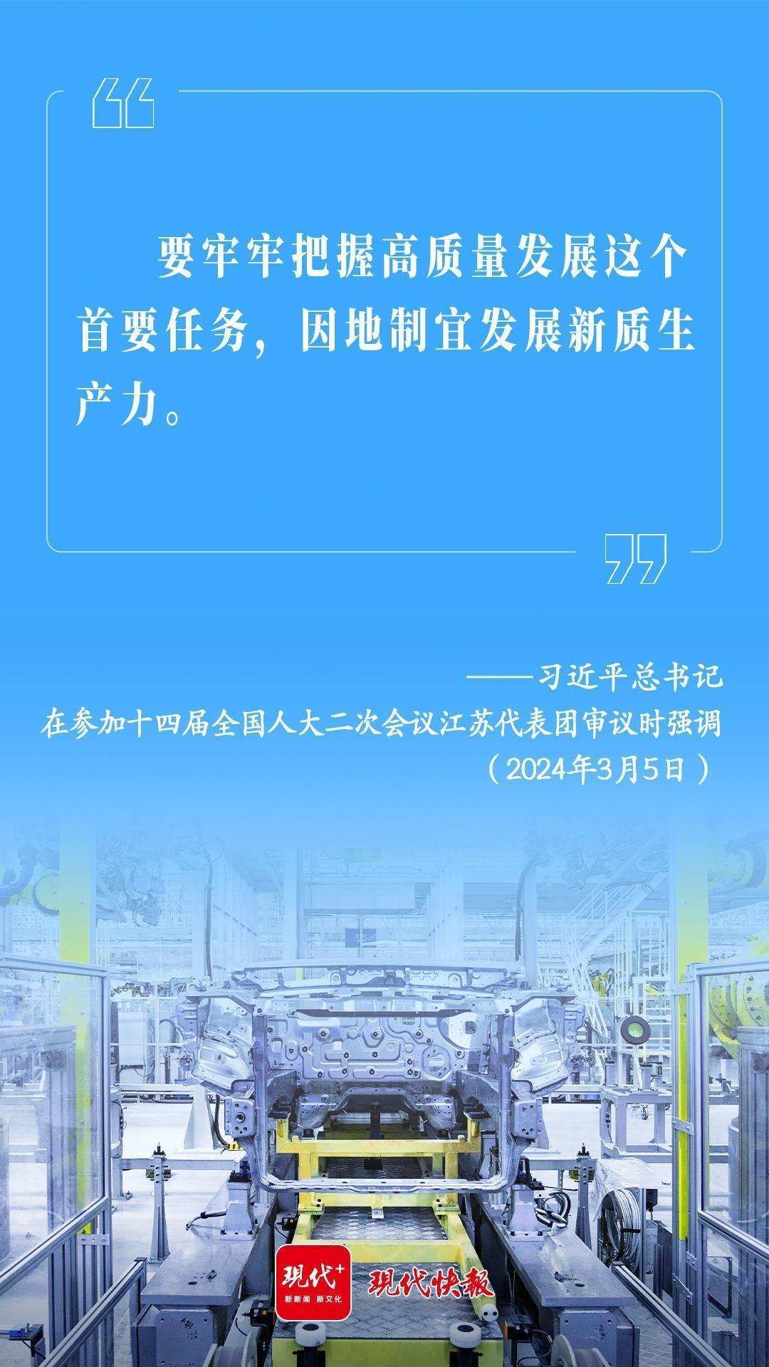 2024年3月5日,習(xí)近平總書記在參加十四屆全國人大二次會(huì)議江蘇代表團(tuán)審議時(shí)強(qiáng)調(diào):“要牢牢把握高質(zhì)量發(fā)展這個(gè)首要任務(wù),因地制宜發(fā)展新質(zhì)生產(chǎn)力?!?/p>