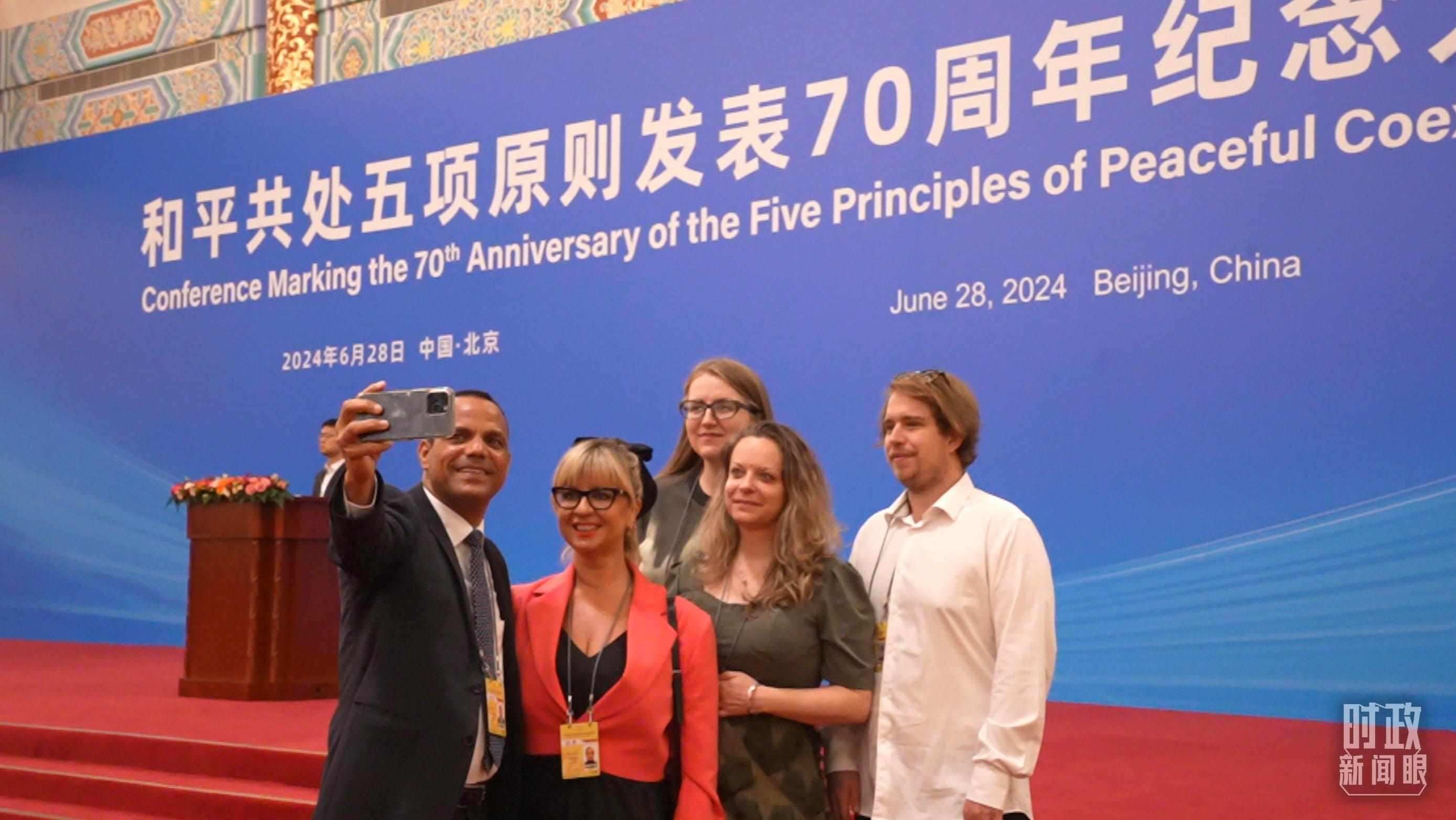△出席紀念大會的外國嘉賓在現(xiàn)場合影留念。(總臺央視記者姚瑤拍攝)