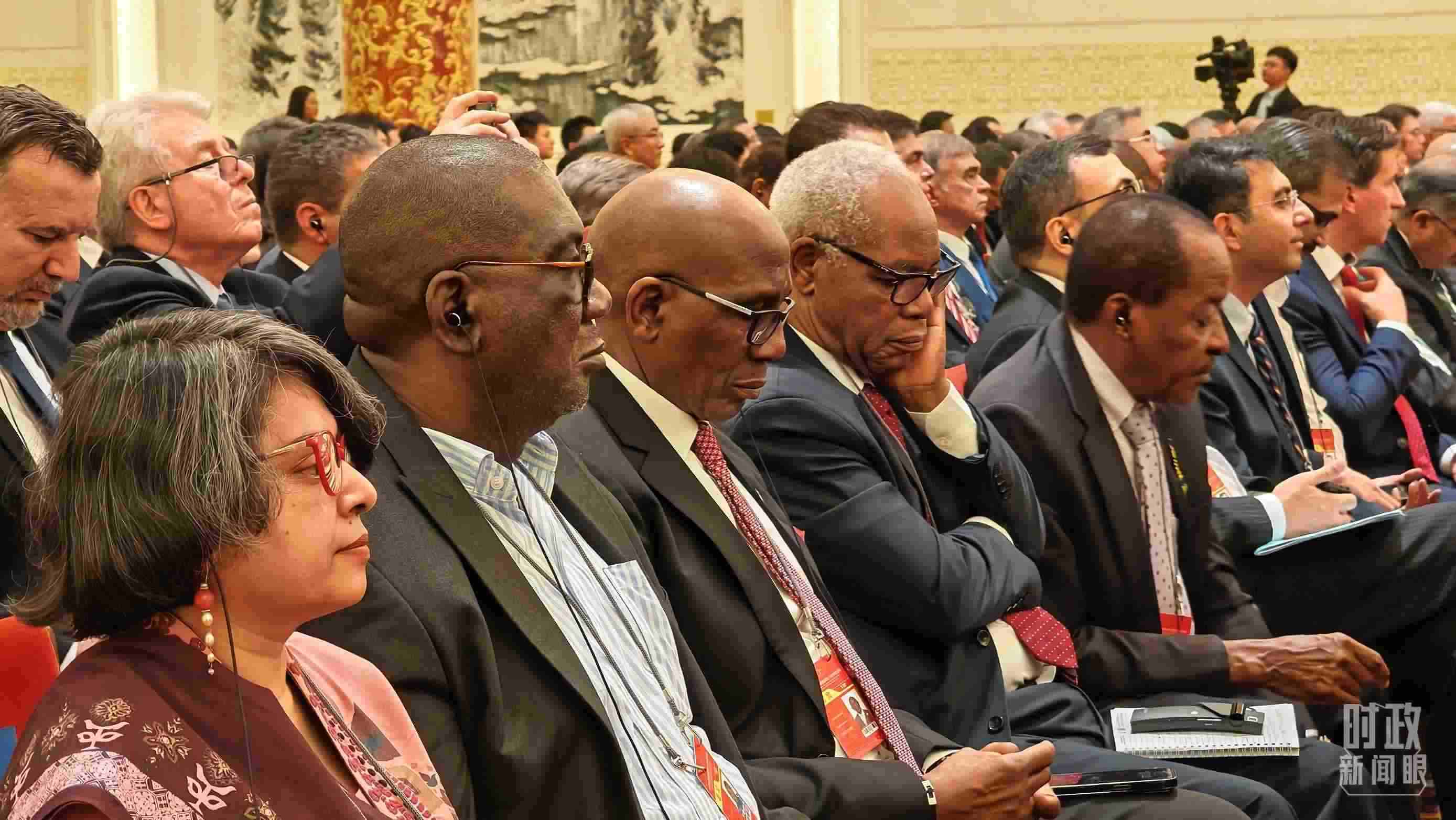 當天,600余人共聚人民大會堂金色大廳,其中包括來自越南、緬甸、南非、埃塞俄比亞、巴西、法國等國的政要,同時還有國際和地區(qū)組織代表、來自100多個國家的駐華使節(jié)、中外專家學者、友好人士、媒體和工商界代表等。