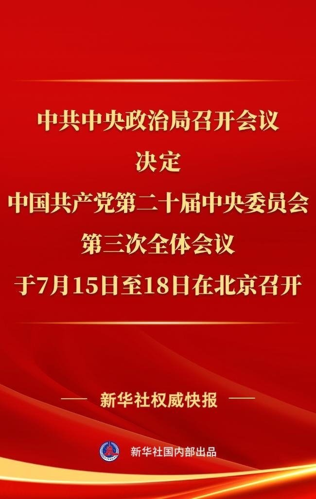 中共中央政治局6月27日召開會(huì)議,研究進(jìn)一步全面深化改革、推進(jìn)中國式現(xiàn)代化問題。中共中央總書記習(xí)近平主持會(huì)議。會(huì)議決定,中國共產(chǎn)黨第二十屆中央委員會(huì)第三次全體會(huì)議于7月15日至18日在北京召開。