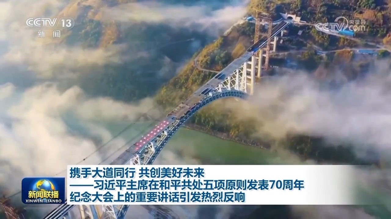 央視網(wǎng)消息(新聞聯(lián)播):6月28日,國(guó)家主席習(xí)近平出席和平共處五項(xiàng)原則發(fā)表70周年紀(jì)念大會(huì),并發(fā)表題為《弘揚(yáng)和平共處五項(xiàng)原則,攜手構(gòu)建人類命運(yùn)共同體》的重要講話。習(xí)近平主席在講話中全面闡釋和平共處五項(xiàng)原則的精神內(nèi)涵和時(shí)代價(jià)值,在世界百年未有之大變局中指明構(gòu)建人類命運(yùn)共同體的前進(jìn)方向,發(fā)出“全球南方”同世界各國(guó)人民共創(chuàng)美好未來(lái)的時(shí)代強(qiáng)音。與會(huì)國(guó)內(nèi)外人士表示,習(xí)近平主席的重要講話飽含著對(duì)歷史的深邃思考、對(duì)現(xiàn)實(shí)的深刻分析、對(duì)未來(lái)的長(zhǎng)遠(yuǎn)謀劃,必將對(duì)推動(dòng)各國(guó)同心協(xié)力建設(shè)更加美好世界產(chǎn)生重大而深遠(yuǎn)的影響。