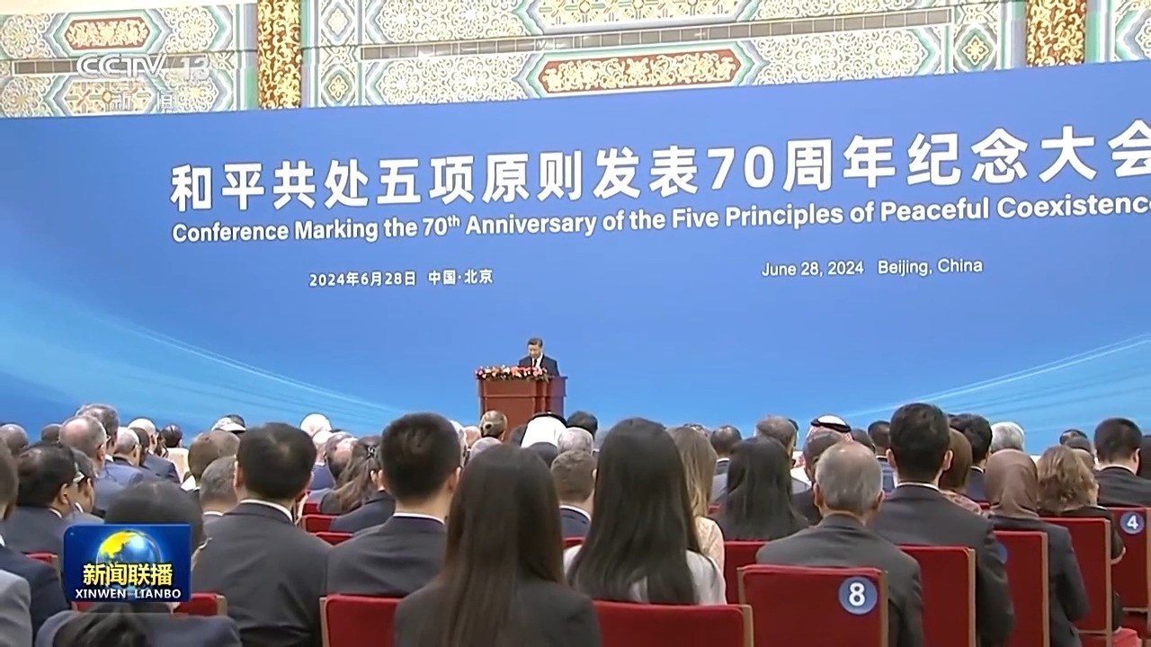6月28日,國家主席習(xí)近平出席和平共處五項原則發(fā)表70周年紀念大會,并發(fā)表題為《弘揚和平共處五項原則,攜手構(gòu)建人類命運共同體》的重要講話。習(xí)近平主席在講話中全面闡釋和平共處五項原則的精神內(nèi)涵和時代價值,在世界百年未有之大變局中指明構(gòu)建人類命運共同體的前進方向,發(fā)出“全球南方”同世界各國人民共創(chuàng)美好未來的時代強音。與會國內(nèi)外人士表示,習(xí)近平主席的重要講話飽含著對歷史的深邃思考、對現(xiàn)實的深刻分析、對未來的長遠謀劃,必將對推動各國同心協(xié)力建設(shè)更加美好世界產(chǎn)生重大而深遠的影響。