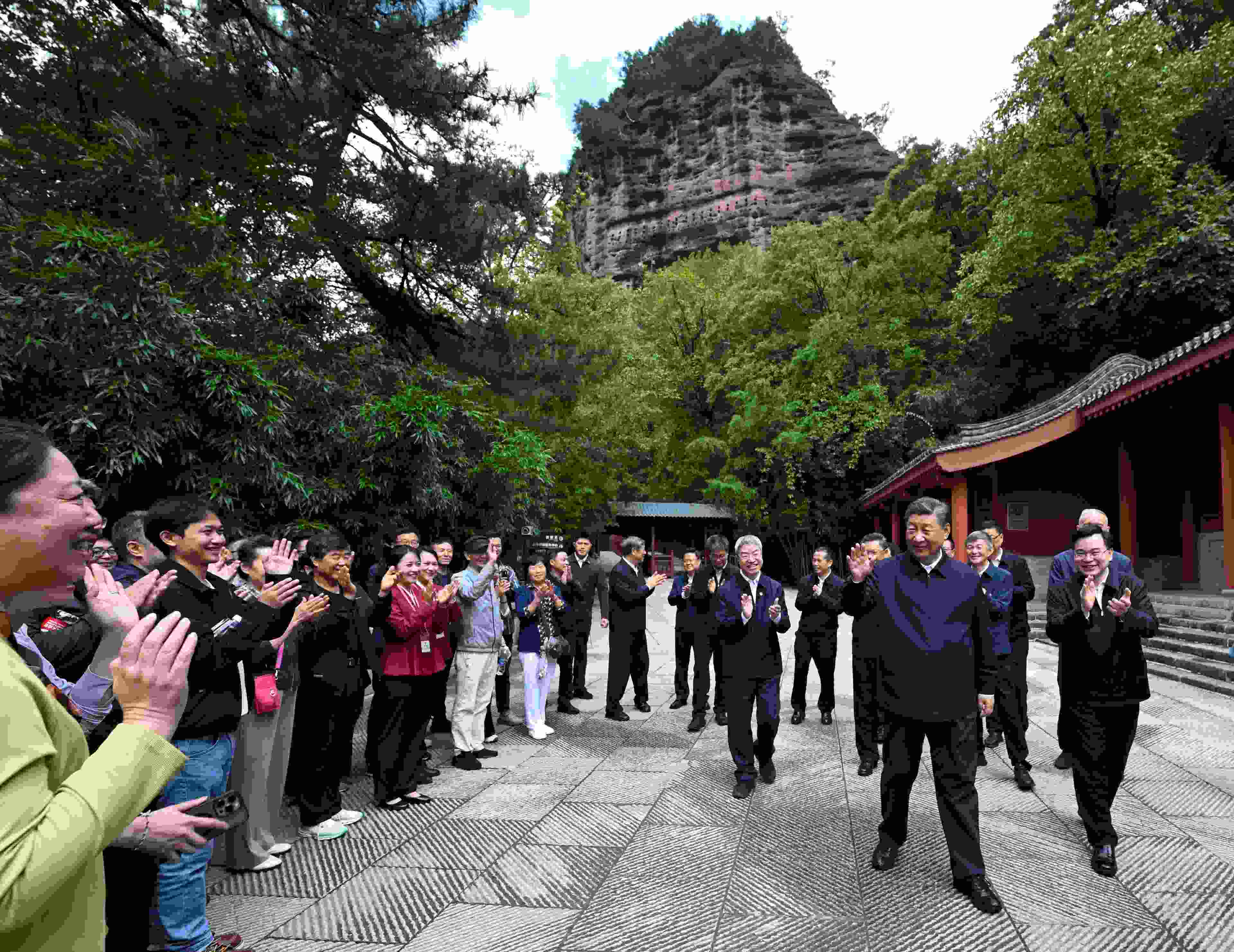 10日下午至11日上午,習(xí)近平總書記先后來(lái)到陜西省寶雞市和甘肅省天水市考察調(diào)研。在寶雞市,習(xí)近平考察了寶雞青銅器博物院、渭河生態(tài)公園,了解當(dāng)?shù)丶訌?qiáng)文物保護(hù)利用和開展渭河生態(tài)保護(hù)治理等情況。在天水市,習(xí)近平考察了伏羲廟、麥積區(qū)南山花牛蘋果基地、麥積山石窟,了解當(dāng)?shù)赝苿?dòng)文化遺產(chǎn)保護(hù)傳承、發(fā)展特色現(xiàn)代山地果業(yè)等情況。