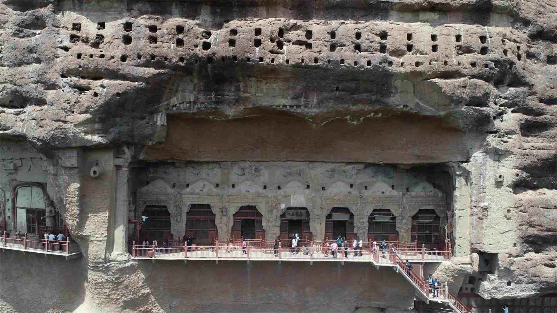 △從棧道上拍攝的麥積山石窟第4窟