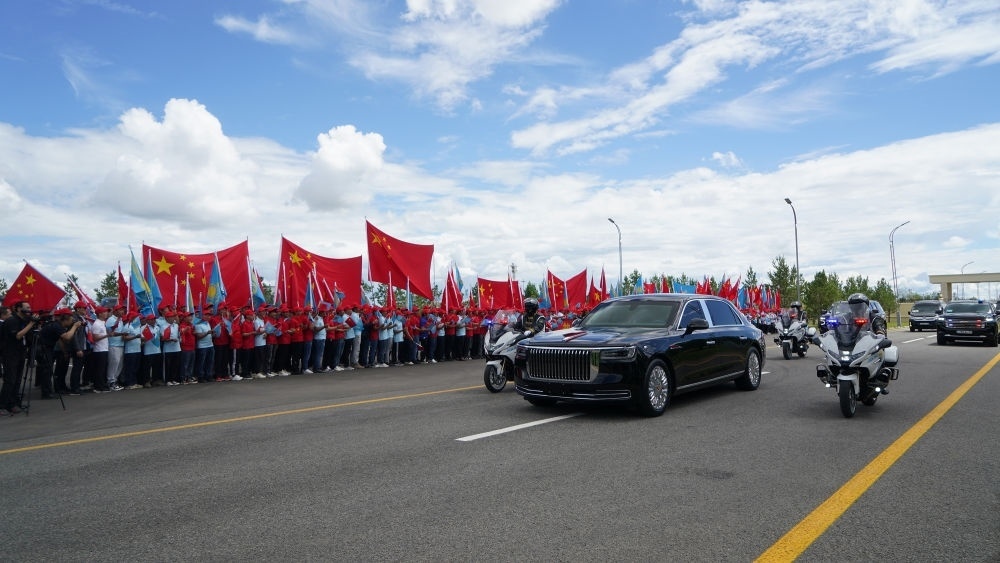 哈方在機場舉行隆重歡迎儀式,哈薩克斯坦少年兒童用中文演唱《歌唱祖國》。習(xí)近平乘車從機場赴下榻飯店途中,當(dāng)?shù)刂匈Y企業(yè)代表等候在道路兩旁,揮舞中哈兩國國旗,高舉“熱烈歡迎習(xí)近平主席訪問哈薩克斯坦”等紅色橫幅,熱烈歡迎習(xí)近平主席到訪。