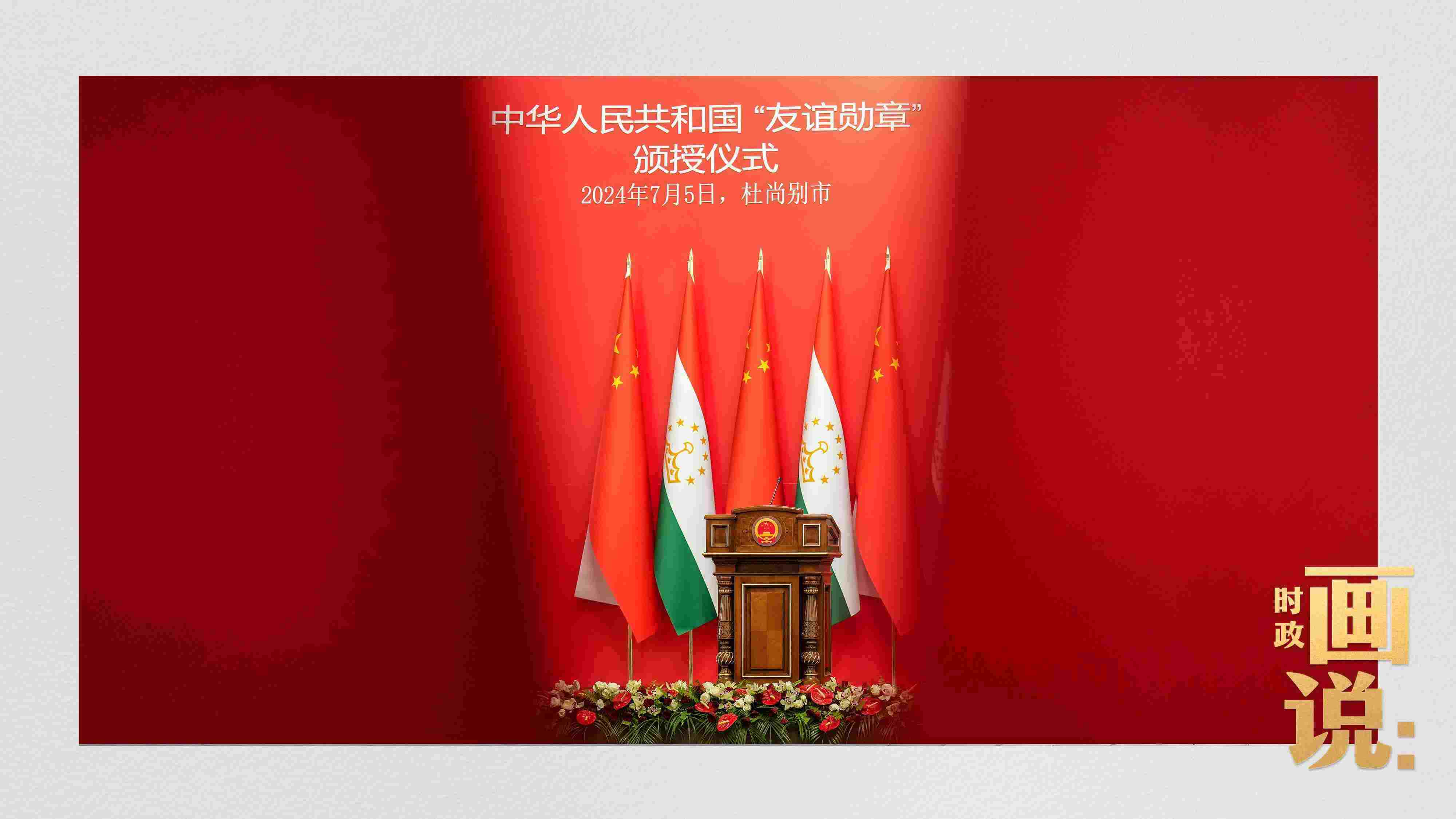 當(dāng)?shù)貢r(shí)間7月5日下午,國家主席習(xí)近平在杜尚別總統(tǒng)府向塔吉克斯坦總統(tǒng)拉赫蒙頒授“友誼勛章”。這是中國首次在境外頒授“友誼勛章”,是為表達(dá)中國人民對拉赫蒙總統(tǒng)和塔吉克斯坦人民友好感情作出的特殊安排。