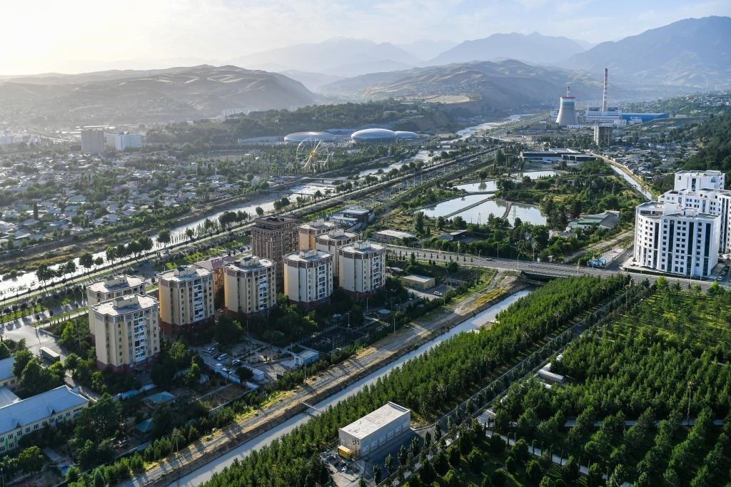 6月26日,從獨(dú)立與自由塔上眺望,奔騰的瓦爾佐布河穿城而過(guò),杜尚別城市風(fēng)光盡入眼簾。