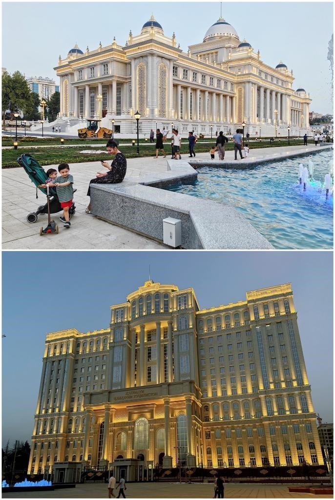 塔議會(huì)大樓、政府大樓坐落于杜尚別著名的魯達(dá)基大道,相隔數(shù)百米。議會(huì)大樓同總統(tǒng)府相望,政府大樓則俯瞰杜尚別另一條交通干道——索莫尼大道。兩座大樓融合歐亞古典柱廊結(jié)構(gòu)、塔吉克民族特色雕刻、伊斯蘭文化風(fēng)格的設(shè)計(jì),外觀大氣、典雅莊重,同魯達(dá)基大道兩側(cè)的古樹(shù)、鮮花、噴泉相映成景。