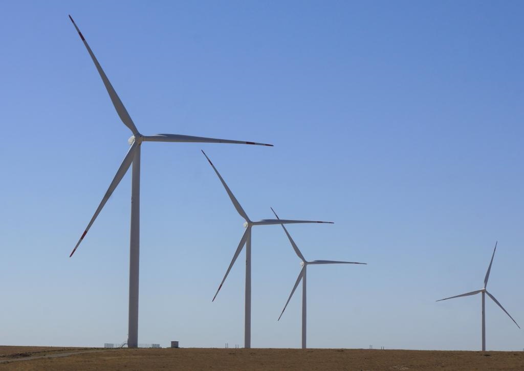 這是2022年9月13日拍攝的哈薩克斯坦札納塔斯風電場風機。札納塔斯100兆瓦風電項目由中國電力國際有限公司和哈薩克斯坦維索爾投資公司共同投資,是中哈合作的中亞最大風電項目。新華社發(fā)(德米特里·瓦西連科攝)
