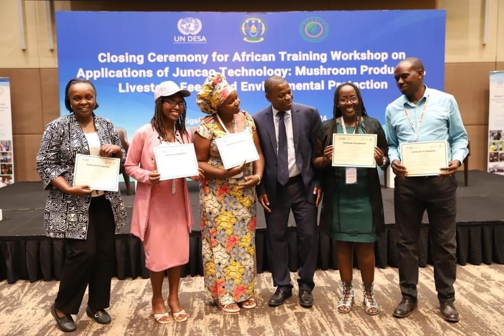 8月初,在非洲地區(qū)菌草技術培訓班舉辦期間,聯(lián)合國官員和使團代表團專程赴盧旺達考察菌草技術和產業(yè)在非洲地區(qū)的發(fā)展?!拔液芨吲d同其他聯(lián)合國官員一起,親眼見證菌草技術以實際行動造福民眾?!甭?lián)合國秘書長辦公室主任考特尼·拉特雷說,菌草技術具有“可負擔”的突出優(yōu)勢,“對非洲大陸所有發(fā)展中國家很有價值、非常適用”。