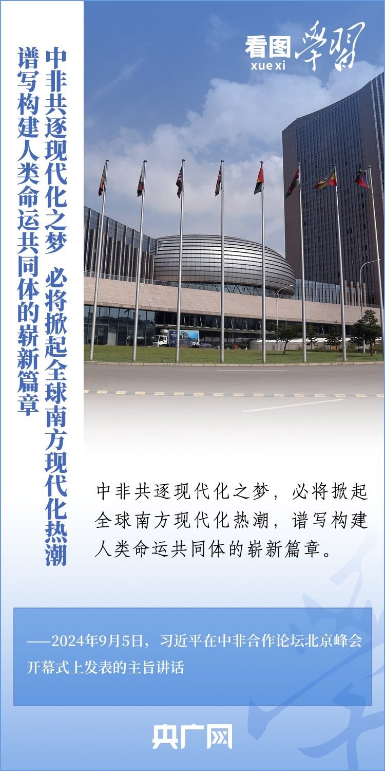 “中非共逐現(xiàn)代化之夢,必將掀起全球南方現(xiàn)代化熱潮,譜寫構(gòu)建人類命運(yùn)共同體的嶄新篇章。”習(xí)近平主席表示,中非關(guān)系正處于歷史最好時(shí)期,中非將攜手推進(jìn)六個(gè)現(xiàn)代化,并推動(dòng)實(shí)施“十大伙伴行動(dòng)”。一起來學(xué)習(xí)!