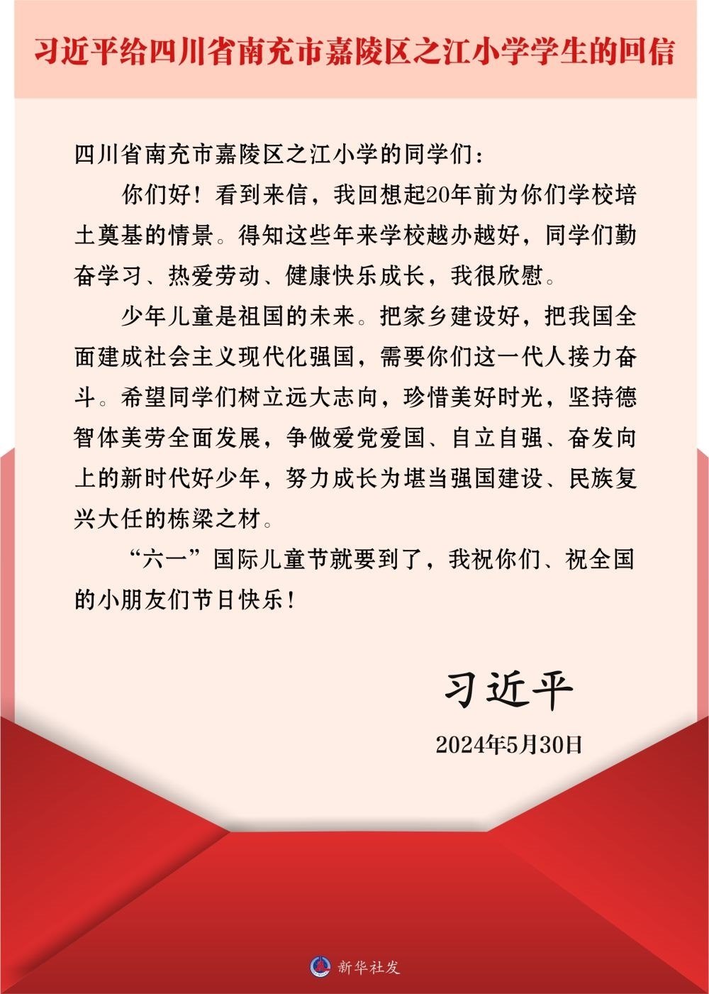 今年"六一"前夕,習(xí)近平總書記給之江小學(xué)的學(xué)生們回信:"得知這些年來學(xué)校越辦越好,同學(xué)們勤奮學(xué)習(xí)、熱愛勞動、健康快樂成長,我很欣慰。"他勉勵同學(xué)們爭做愛黨愛國、自立自強、奮發(fā)向上的新時代好少年,努力成長為堪當強國建設(shè)、民族復(fù)興大任的棟梁之材。