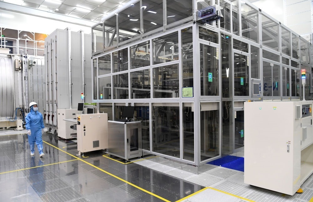 2022年7月28日,安徽合肥京東方顯示技術有限公司的工作人員在10.5代生產線上作業(yè)。