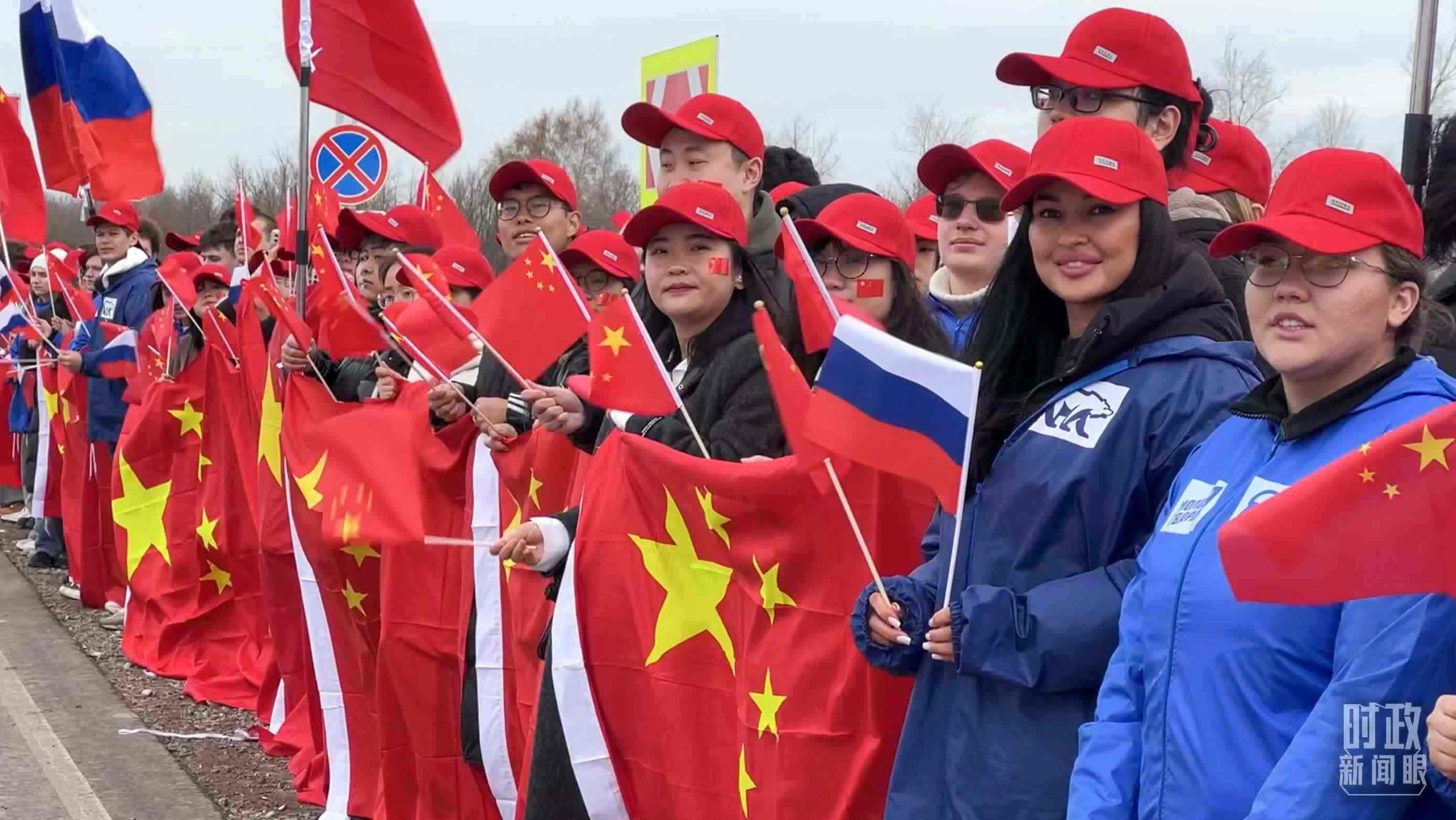 △ 俄羅斯喀山各界人士揮舞中俄兩國國旗,歡迎習主席到訪。(總臺央視記者楊新禹拍攝)