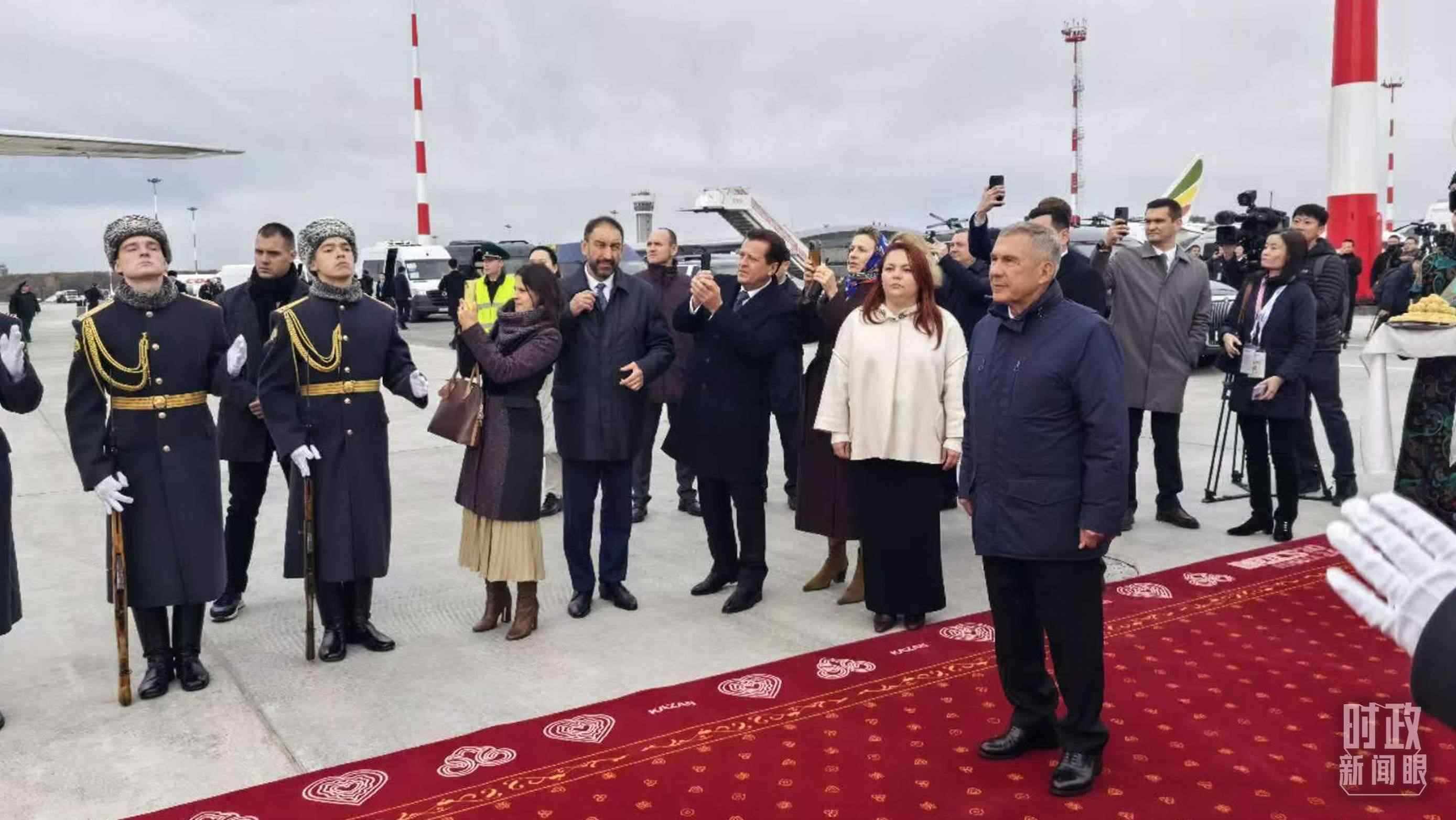 △ 習主席專機抵達喀山國際機場時,俄羅斯聯邦韃靼斯坦共和國行政長官等在機場熱情迎接。(總臺央視記者王鵬飛拍攝)