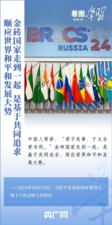 當(dāng)?shù)貢r(shí)間10月23日,國(guó)家主席習(xí)近平在俄羅斯喀山出席金磚國(guó)家領(lǐng)導(dǎo)人第十六次會(huì)晤并發(fā)表重要講話。習(xí)主席深刻闡述推動(dòng)“大金磚合作”高質(zhì)量發(fā)展的中國(guó)主張,就金磚大家庭發(fā)展合作提出五點(diǎn)務(wù)實(shí)舉措,表達(dá)了中方愿同金磚各國(guó)一道,攜手更多“全球南方”國(guó)家共同推動(dòng)構(gòu)建人類命運(yùn)共同體的真誠(chéng)愿望。一起來(lái)學(xué)習(xí)!