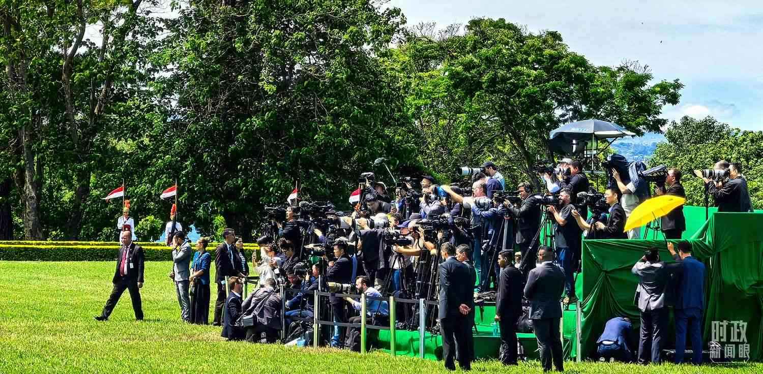 △歡迎儀式現(xiàn)場(chǎng)的媒體記者。(總臺(tái)央視記者周志國(guó)拍攝)