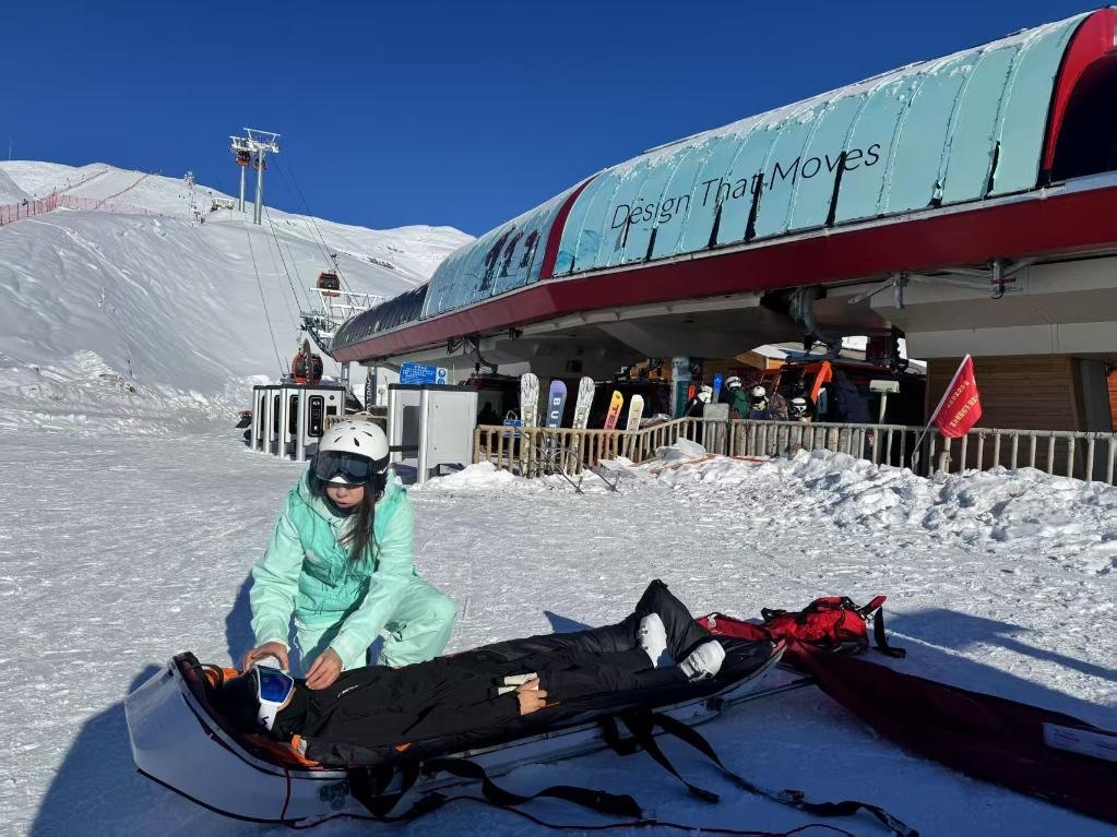 一次巡邏時,帕提曼看到一名雪友橫躺在雪道中間,雪板被甩出很遠,上前查看后發(fā)現(xiàn)其大腿骨折。她立即進行夾板固定、紗布包扎等操作,隨后協(xié)助轉(zhuǎn)運傷員。