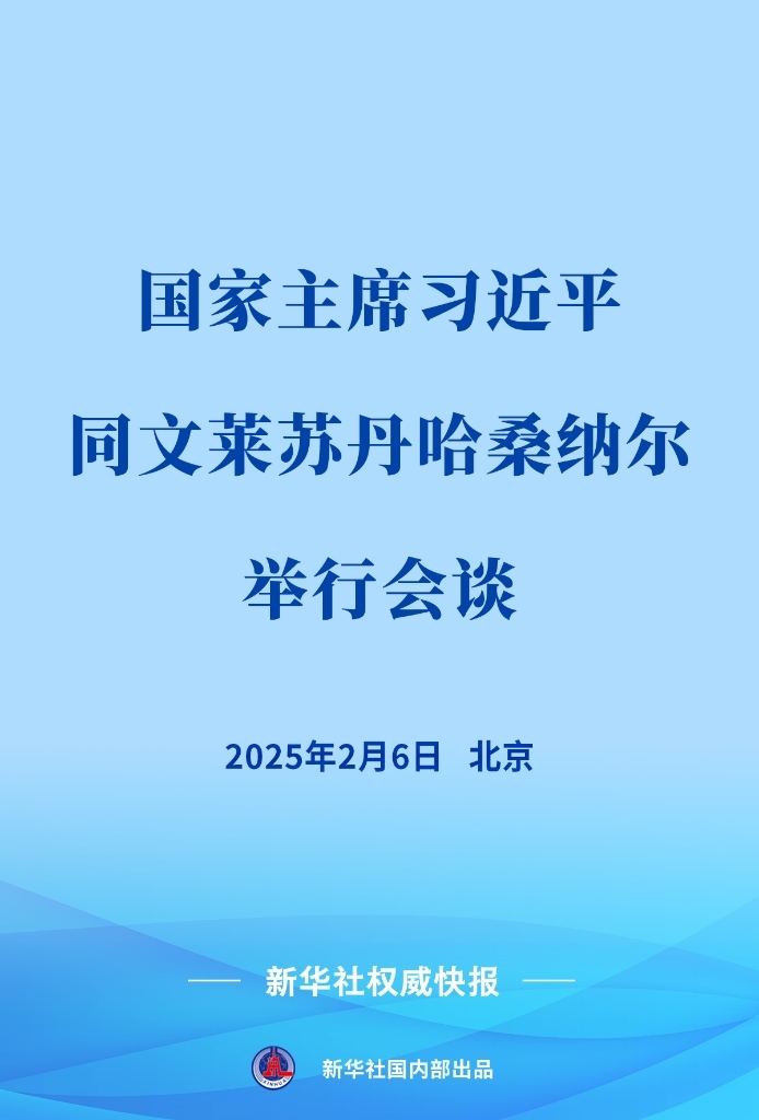 2月6日上午,國家主席習近平在北京人民大會堂同來華進行國事訪問的文萊蘇丹哈桑納爾舉行會談。