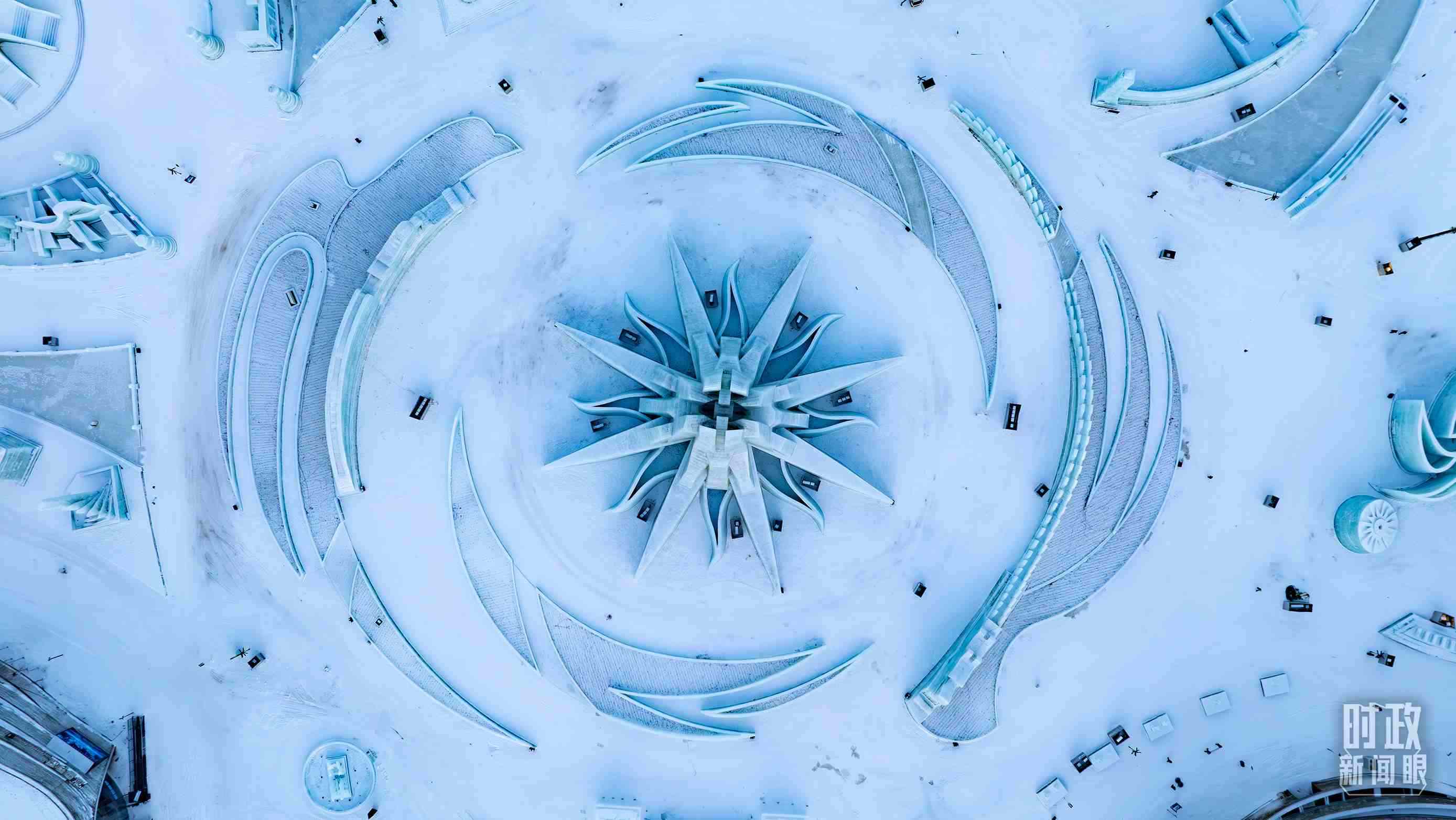 △哈爾濱冰雪大世界“雪花”圖案。(總臺(tái)記者邵沖拍攝)