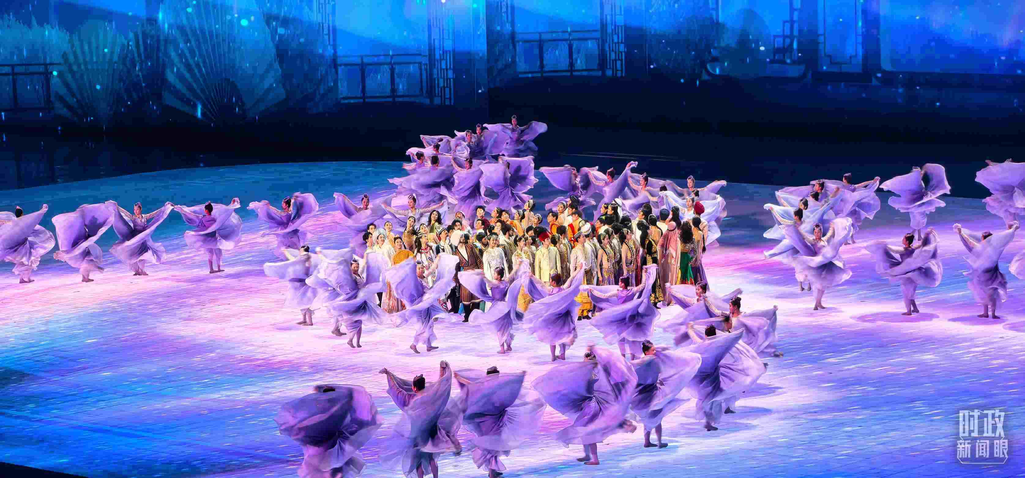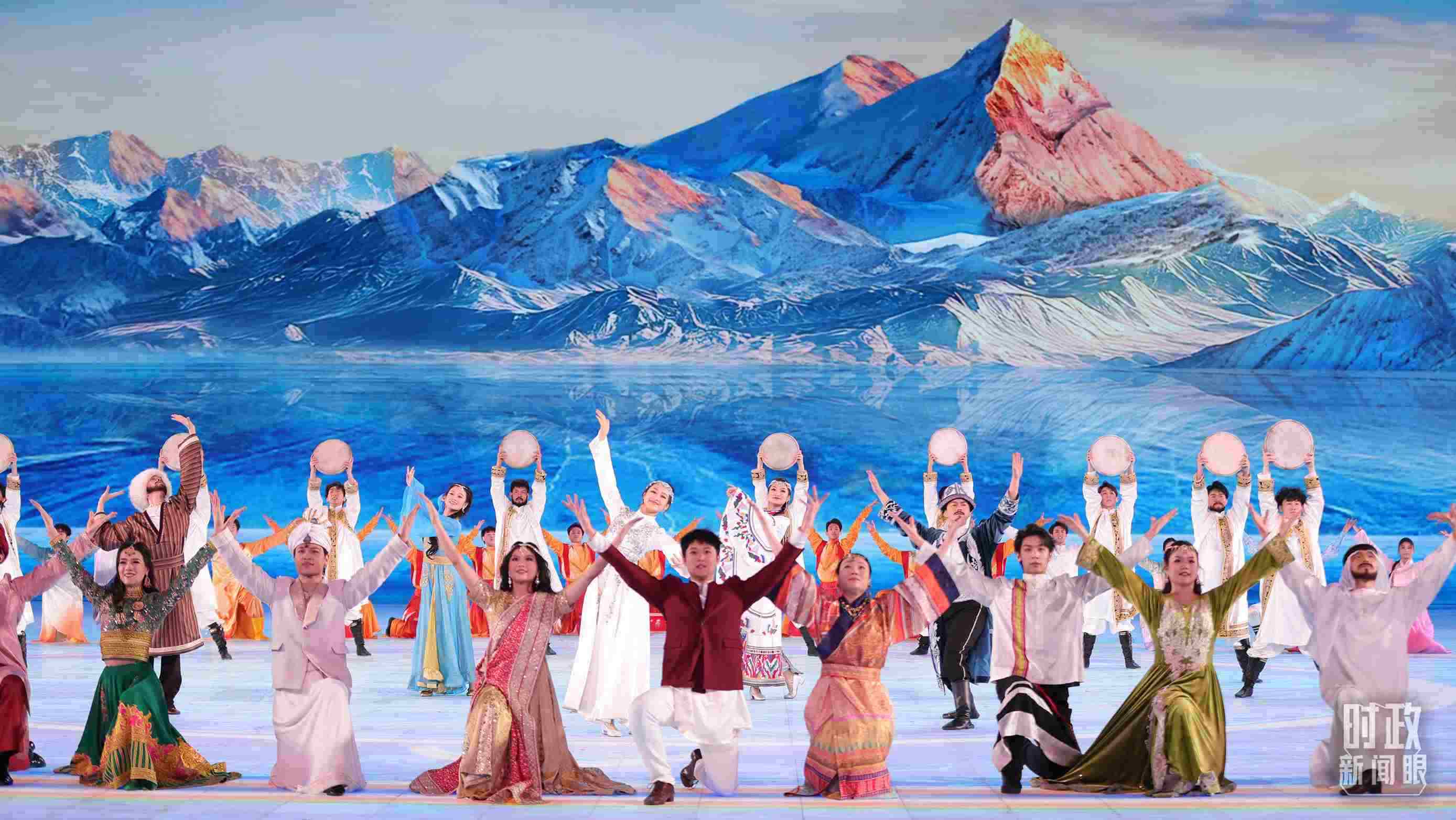 文藝表演分為上篇《熾熱冰雪》、中篇《燃情時(shí)速》、下篇《山高水長(zhǎng)》,通過(guò)《長(zhǎng)歌頌冰河》《榮光耀未來(lái)》《馳騁天地間》《璀璨嘉年華》《攜手情久長(zhǎng)》《萬(wàn)里共和鳴》等節(jié)目,展現(xiàn)化“極寒”為“極美”“極燃”“極暖”的意蘊(yùn)。