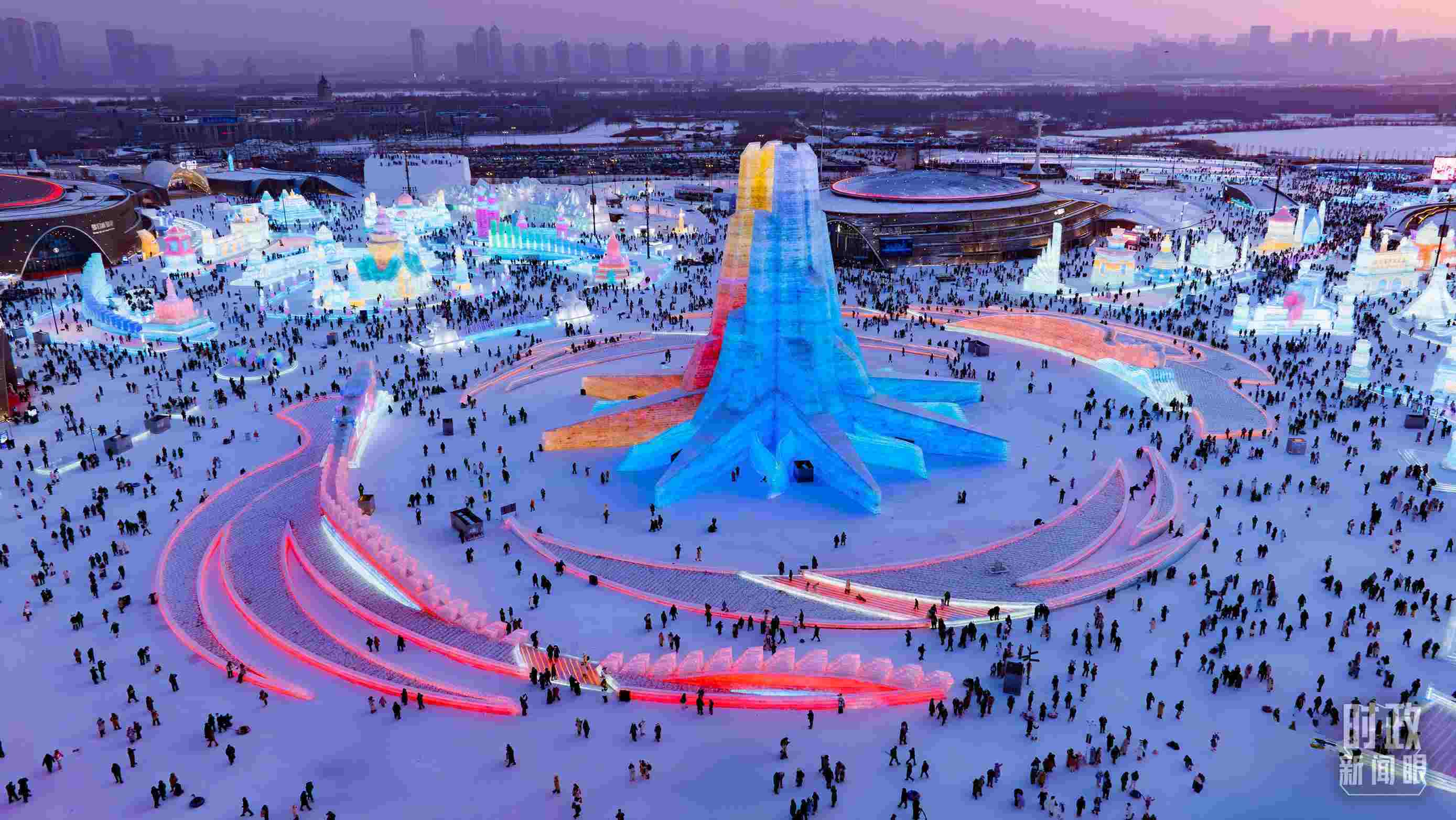△俯瞰哈爾濱冰雪大世界。(總臺(tái)記者邵沖拍攝)