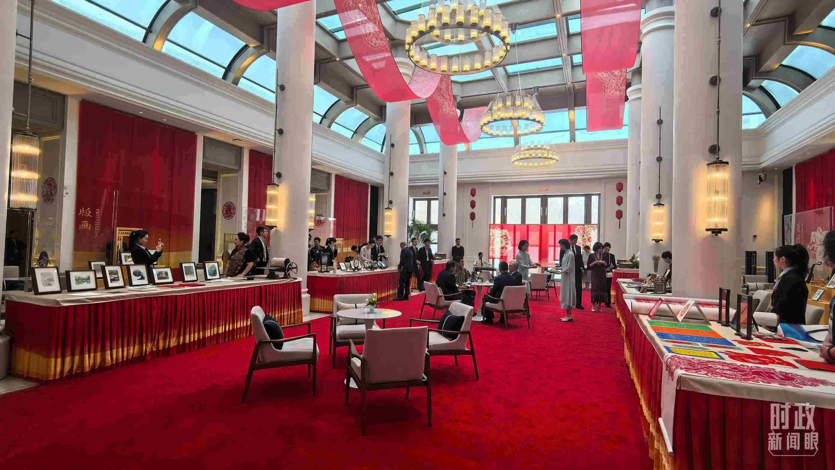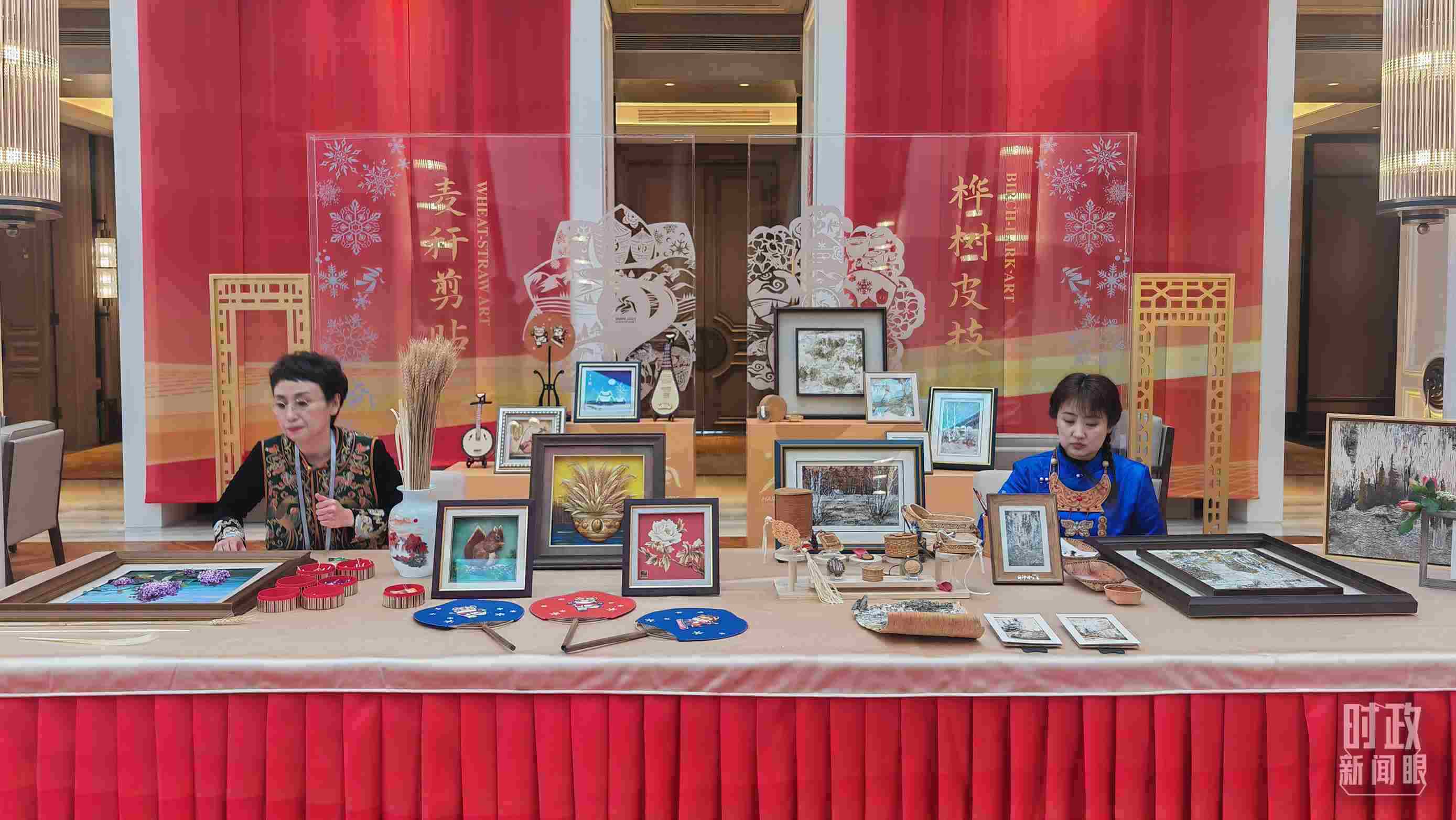 △歡迎宴會(huì)開始前的黑龍江非物質(zhì)文化遺產(chǎn)展示。(總臺(tái)央視記者史偉、央廣記者馬喆拍攝)