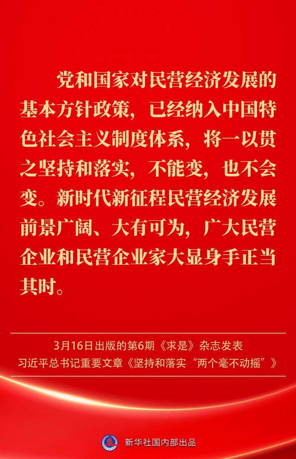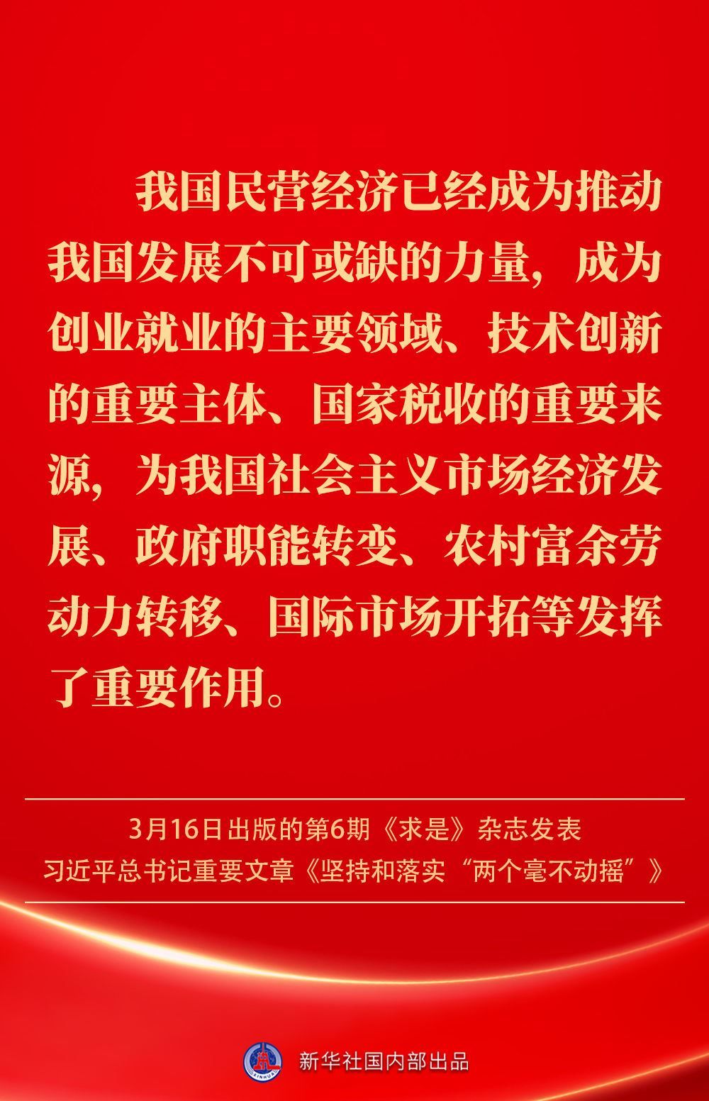 3月16日出版的第6期《求是》雜志發(fā)表習(xí)近平總書(shū)記重要文章《堅(jiān)持和落實(shí)“兩個(gè)毫不動(dòng)搖”》。這是習(xí)近平總書(shū)記2013年11月至2025年2月期間有關(guān)重要論述的節(jié)錄。如何認(rèn)識(shí)“兩個(gè)毫不動(dòng)搖”?公有制經(jīng)濟(jì)和非公有制經(jīng)濟(jì)是怎樣的關(guān)系?習(xí)近平總書(shū)記這樣闡述——