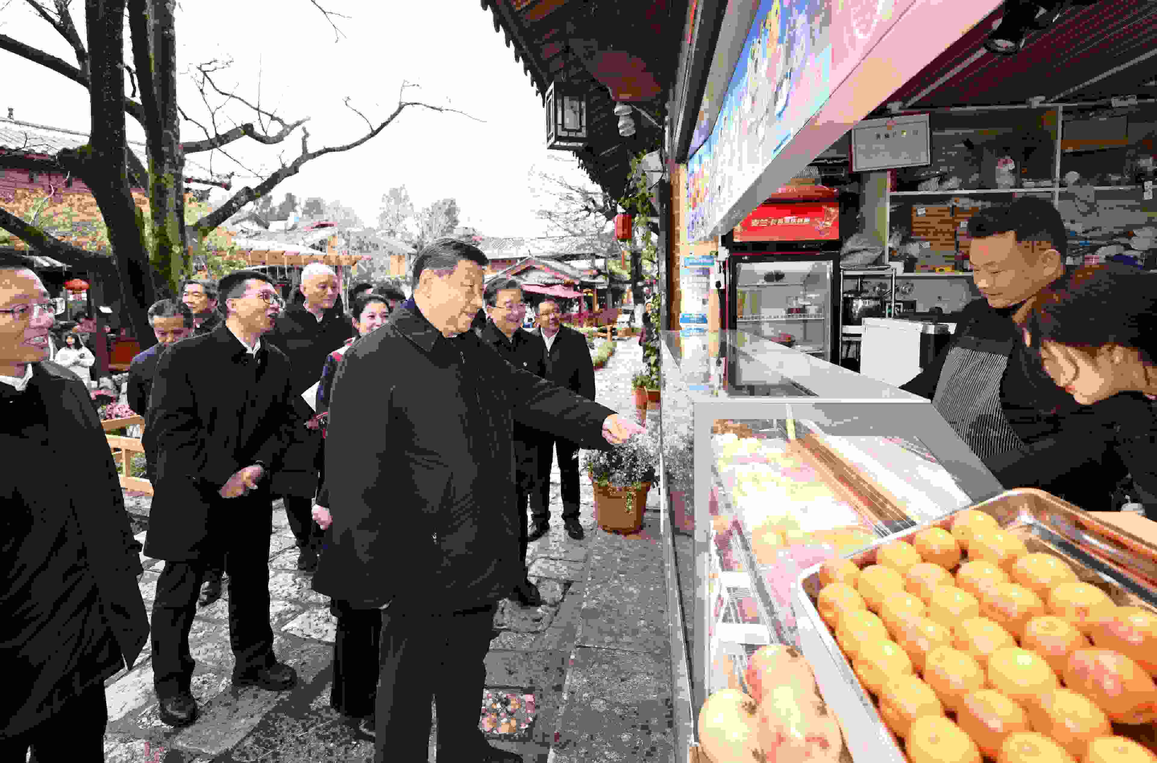 習近平總書記19日下午來到云南麗江古城,沿著石板路邊走邊看。當?shù)鼐用窈脱赝居慰褪譄崆榈叵蚩倳泦柡?,習近平不時停下腳步同大家親切交流。習近平說,這里的文化、風光、民俗都非常吸引人,文旅融合促進了經濟發(fā)展。文旅產業(yè)要走一條持續(xù)、健康的發(fā)展之路。希望你們的生活幸福安康,就像納西族的大姓“和”姓一樣,和和美美。