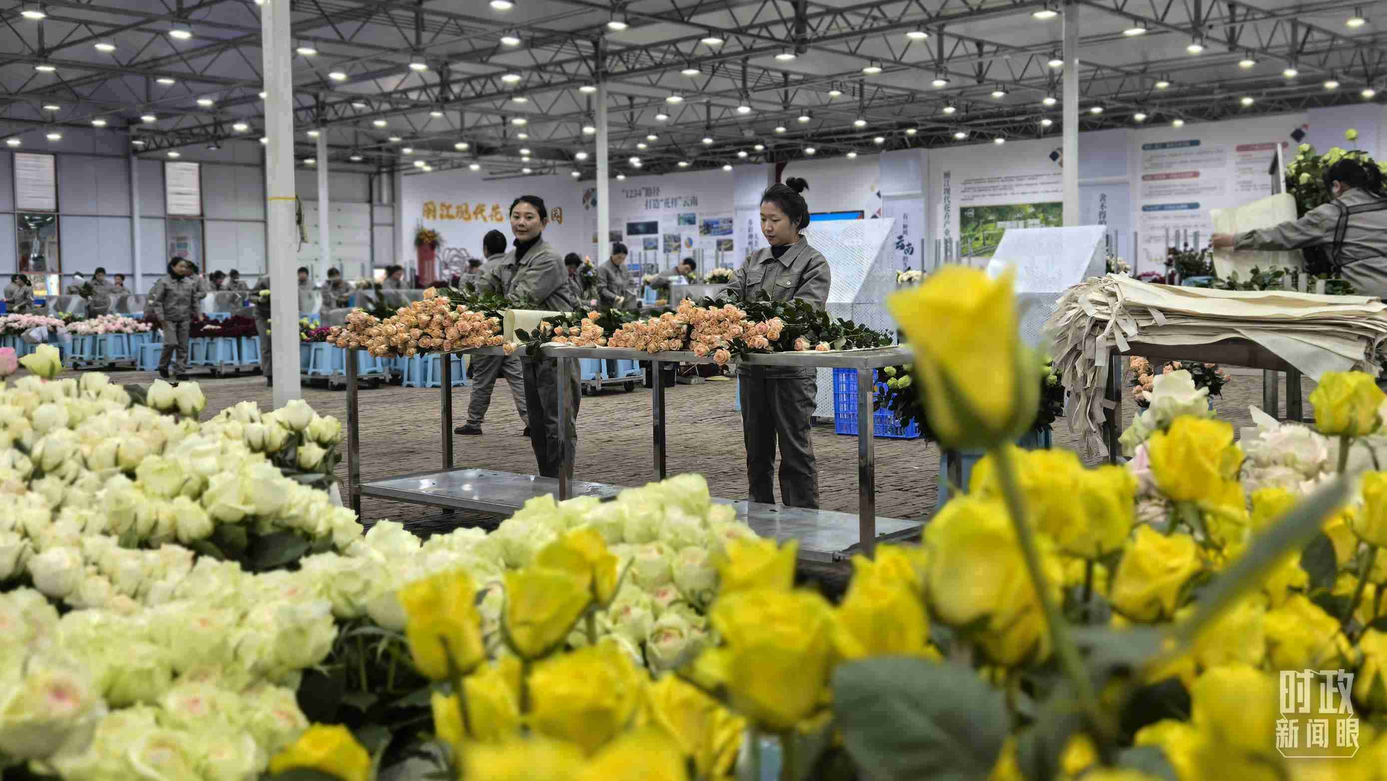 △展廳里展示的鮮花品種。(總臺(tái)央視記者趙東辰拍攝)