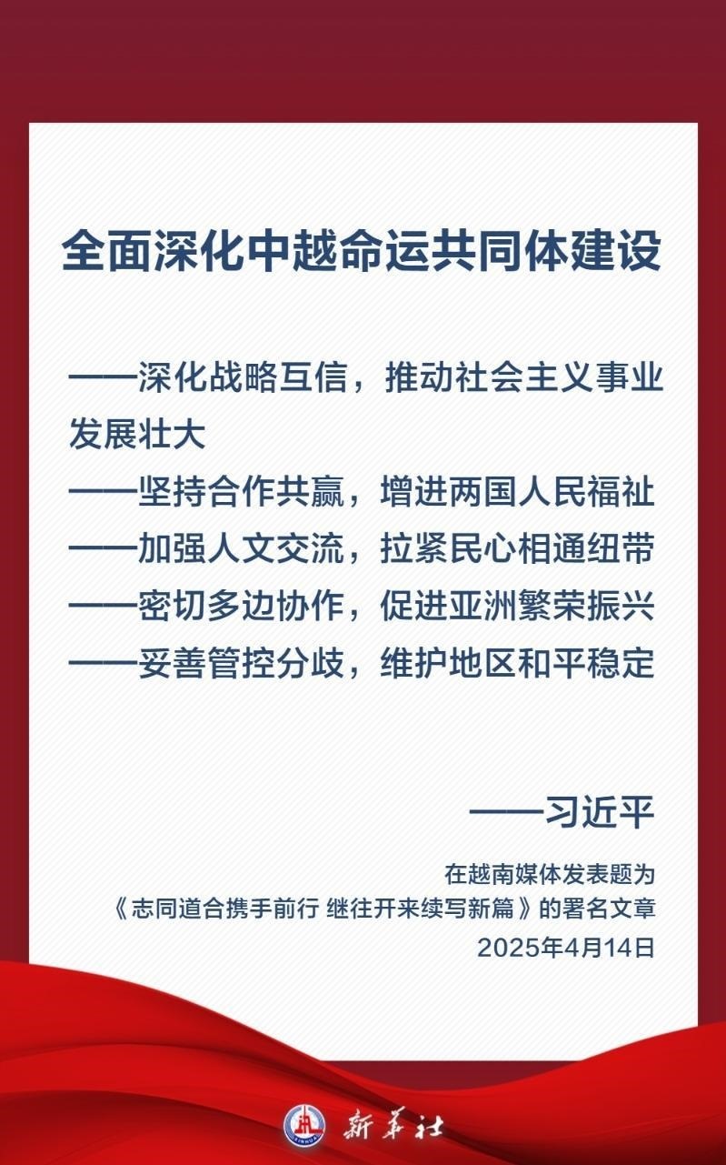中共中央總書記、國(guó)家主席習(xí)近平4月14日至15日對(duì)越南進(jìn)行國(guó)事訪問。此訪適逢中越建交75周年,對(duì)兩國(guó)關(guān)系具有承前啟后、繼往開來(lái)的重大意義。