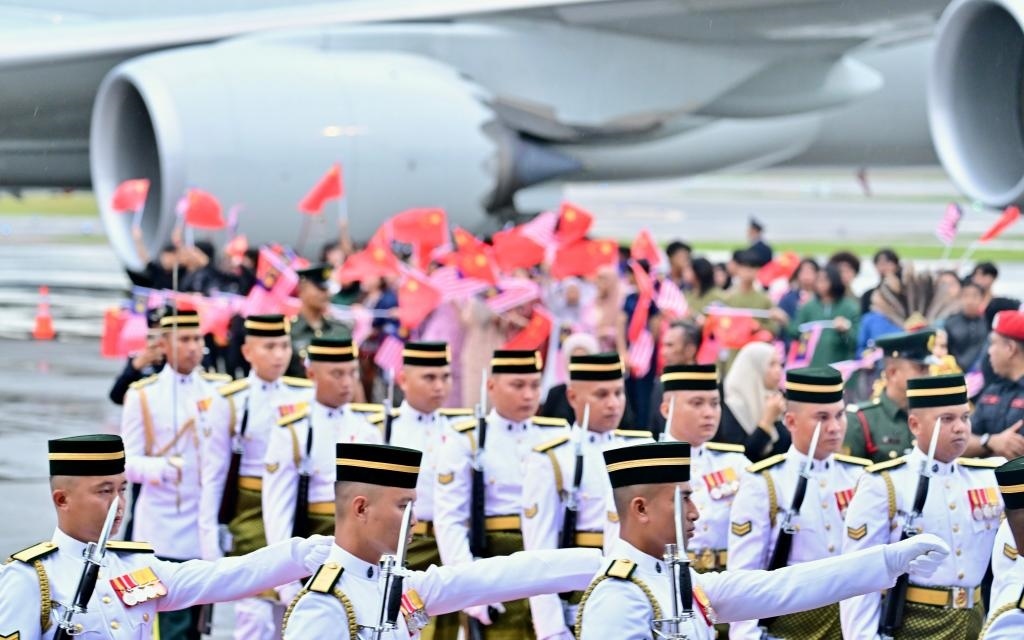 當地時間4月15日晚,國家主席習近平乘專機抵達吉隆坡,應馬來西亞最高元首易卜拉欣邀請,對馬來西亞進行國事訪問。