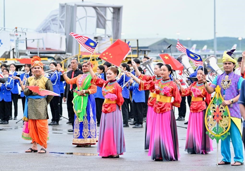 馬來西亞兒童向習近平獻花,馬來西亞青少年表演富有當地特色的舞蹈,揮舞中馬兩國國旗,熱烈歡迎習近平到訪。