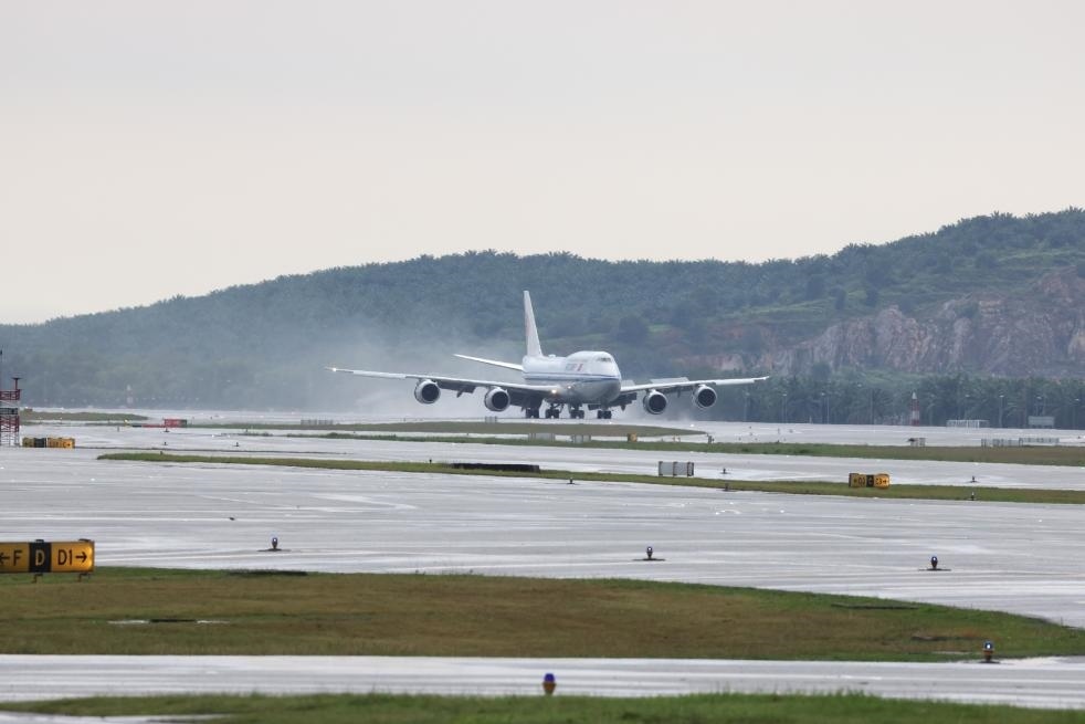 專機抵達吉隆坡國際機場時,馬來西亞總理安瓦爾,外交部部長穆罕默德,陪同部長、交通部部長陸兆福等高級官員熱情迎接。