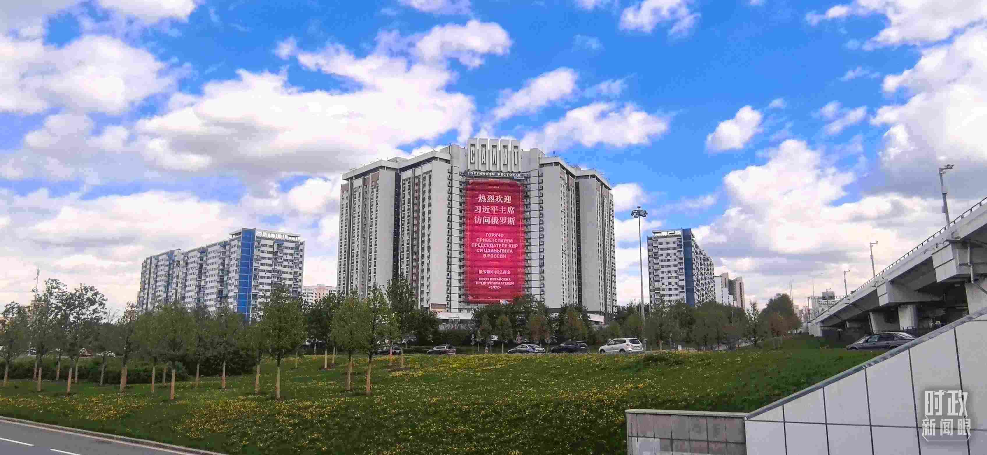△莫斯科街頭醒目的歡迎標語。(總臺央視記者范凱拍攝)