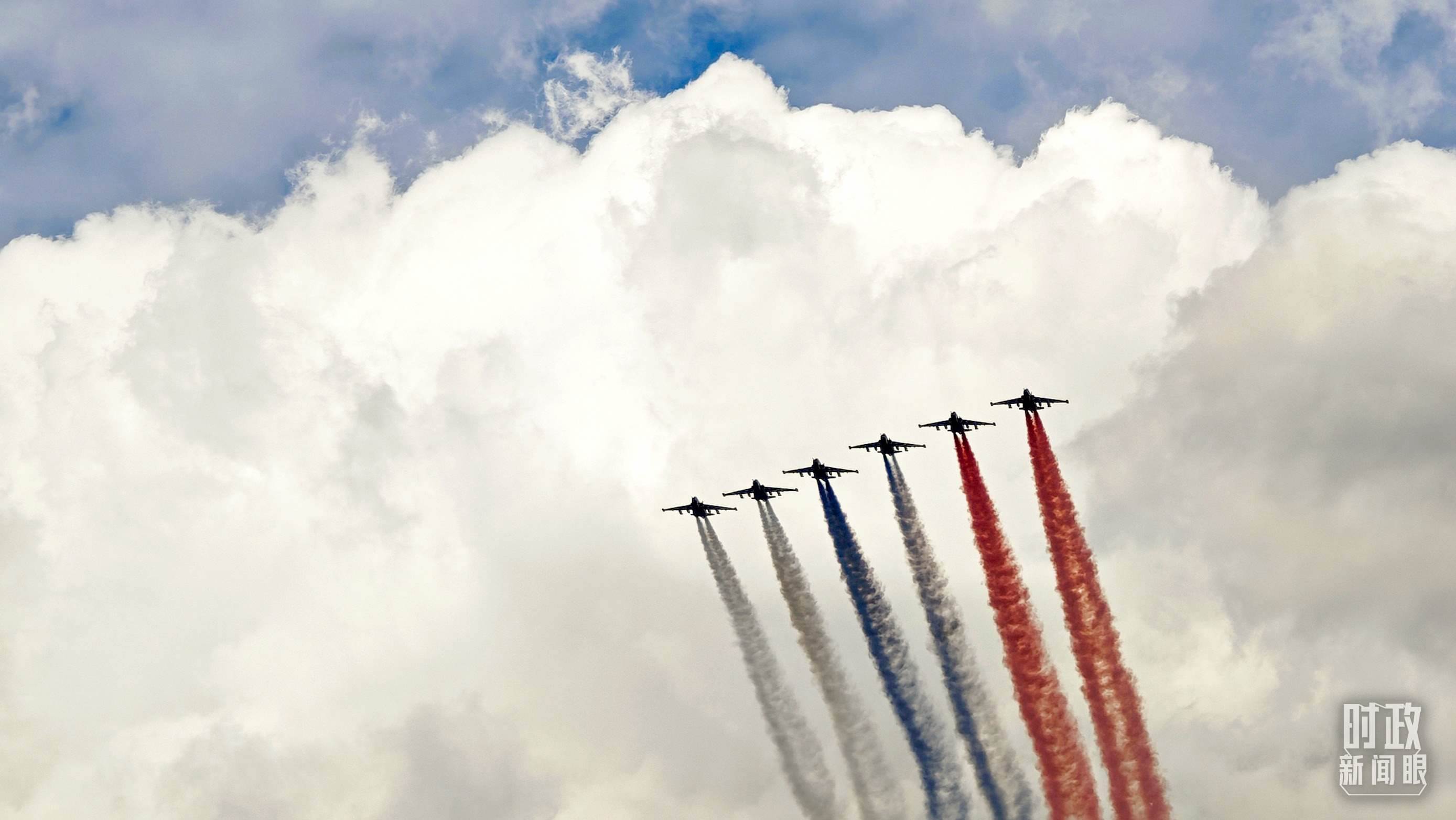 △俄羅斯戰(zhàn)機升空護航。(總臺央視記者李錚拍攝)