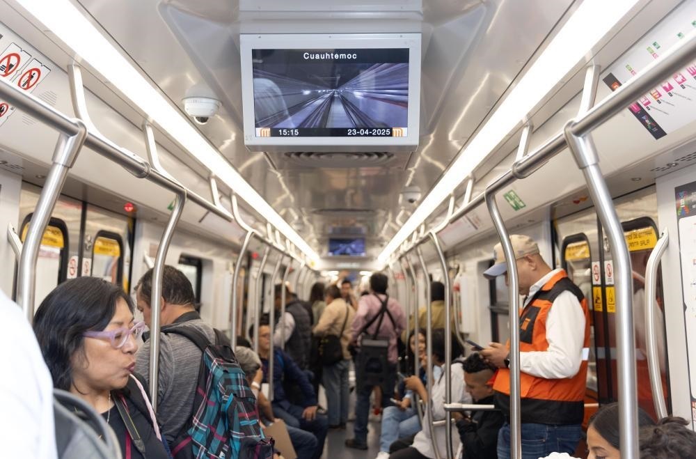 △2025年4月,人們在墨西哥首都墨西哥城乘坐地鐵新1號線列車。
