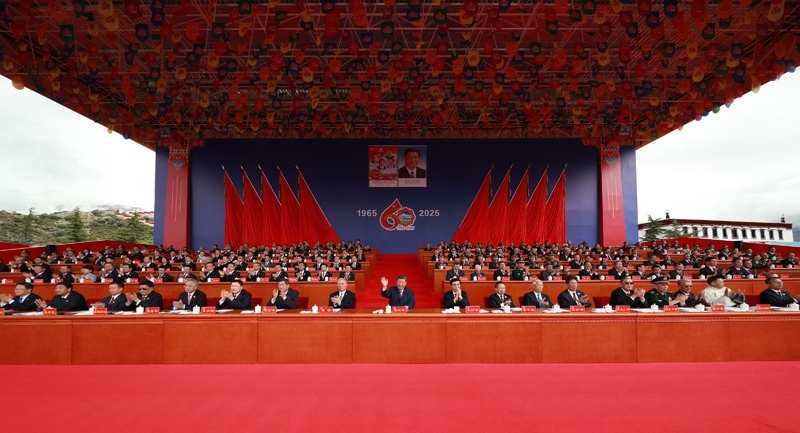 8月21日上午,西藏各族各界干部群眾約2萬(wàn)人歡聚拉薩市布達(dá)拉宮廣場(chǎng),熱烈慶祝西藏自治區(qū)成立60周年。中共中央總書記、國(guó)家主席、中央軍委主席習(xí)近平出席慶祝大會(huì)。王滬寧、蔡奇出席大會(huì)。