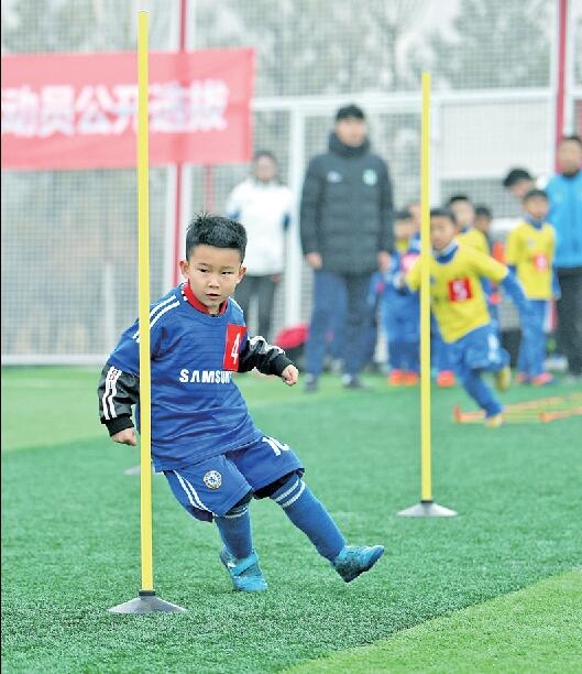 “我們是聽朋友的消息來(lái)參加選拔的。”蘇虎街小學(xué)一年級(jí)的李宸報(bào)名參加了選拔活動(dòng),李宸的媽媽介紹說(shuō):“孩子7周歲,去年冬天參加了一個(gè)足球訓(xùn)練班,然后就把這項(xiàng)運(yùn)動(dòng)當(dāng)成他興趣之一進(jìn)行了培養(yǎng)和支持。”李宸接觸足球緣于他的父親是一名足球運(yùn)動(dòng)愛好者,這在孩子的興趣引導(dǎo)上起了很大的作用“。他爸爸很喜歡足球這個(gè)運(yùn)動(dòng),多少影響到了他。如果孩子喜歡,我們當(dāng)然會(huì)一直支持下去。”李宸的媽媽說(shuō)。