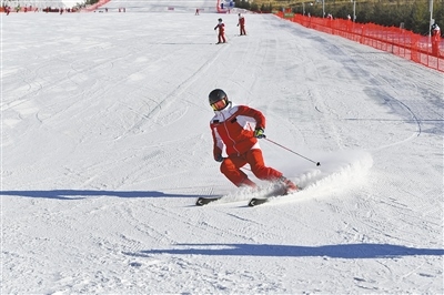 滑雪愛好者在呼和浩特市馬鬃山滑雪場滑雪。記者 王磊 攝