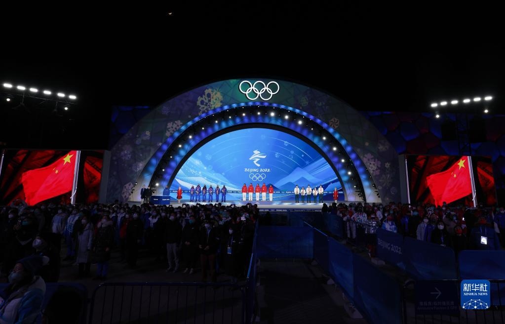 當(dāng)日,北京2022年冬奧會(huì)短道速滑混合團(tuán)體接力獎(jiǎng)牌頒發(fā)儀式在北京賽區(qū)頒獎(jiǎng)廣場(chǎng)舉行。